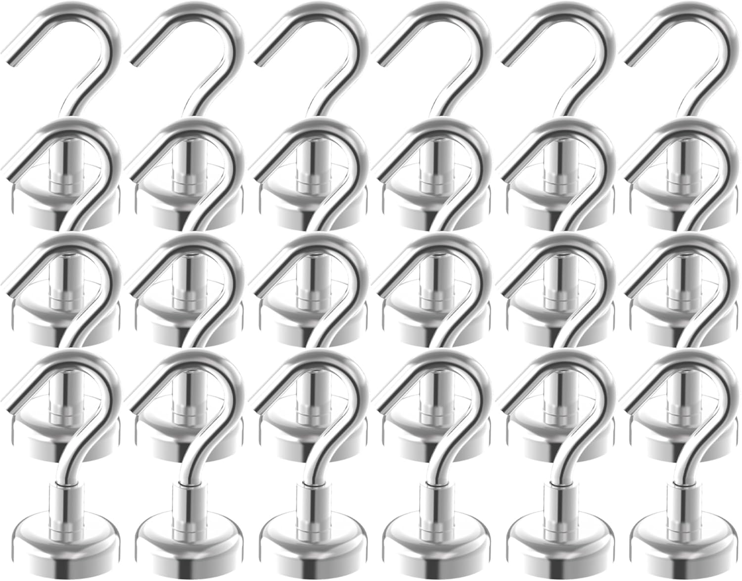 Heavy Duty Small Magnetic Hooks with 0.79" Dia Magnetic Base,40lbs - 24Pack Super Strong Rare Earth Magnet Hook, Extra Strong Cruise Hook for Hanging, Magnetic Hanger for Cabins, Grill
