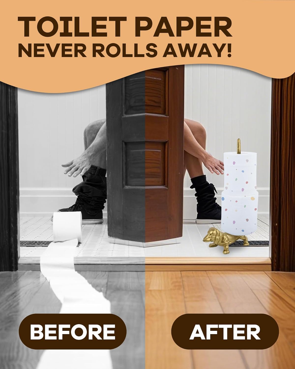 - 🐕 CHARMING DOG DESIGN WITH STABILITY - Crafted from solid cast iron with elegant gold electroplating, this freestanding paper towel holder features a 1,450g (3.2lbs) weighted base preventing tipping while adding adorable charm to your space. Perfect bathroom or kitchen countertop accessory that combines function with style.