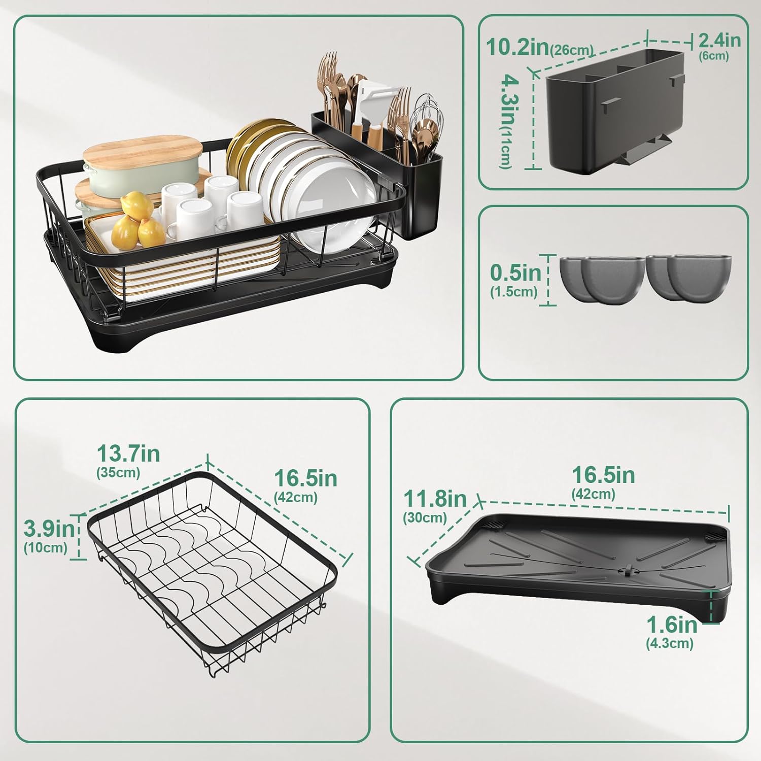 - Efficient drainage system:Kitchen dish drying rack features an adjustable multi-directional adjustable spout, tilted drainboard and built-in waterway to channel excess water into the sink and drain standing water.Note: Open the drain plunger before use