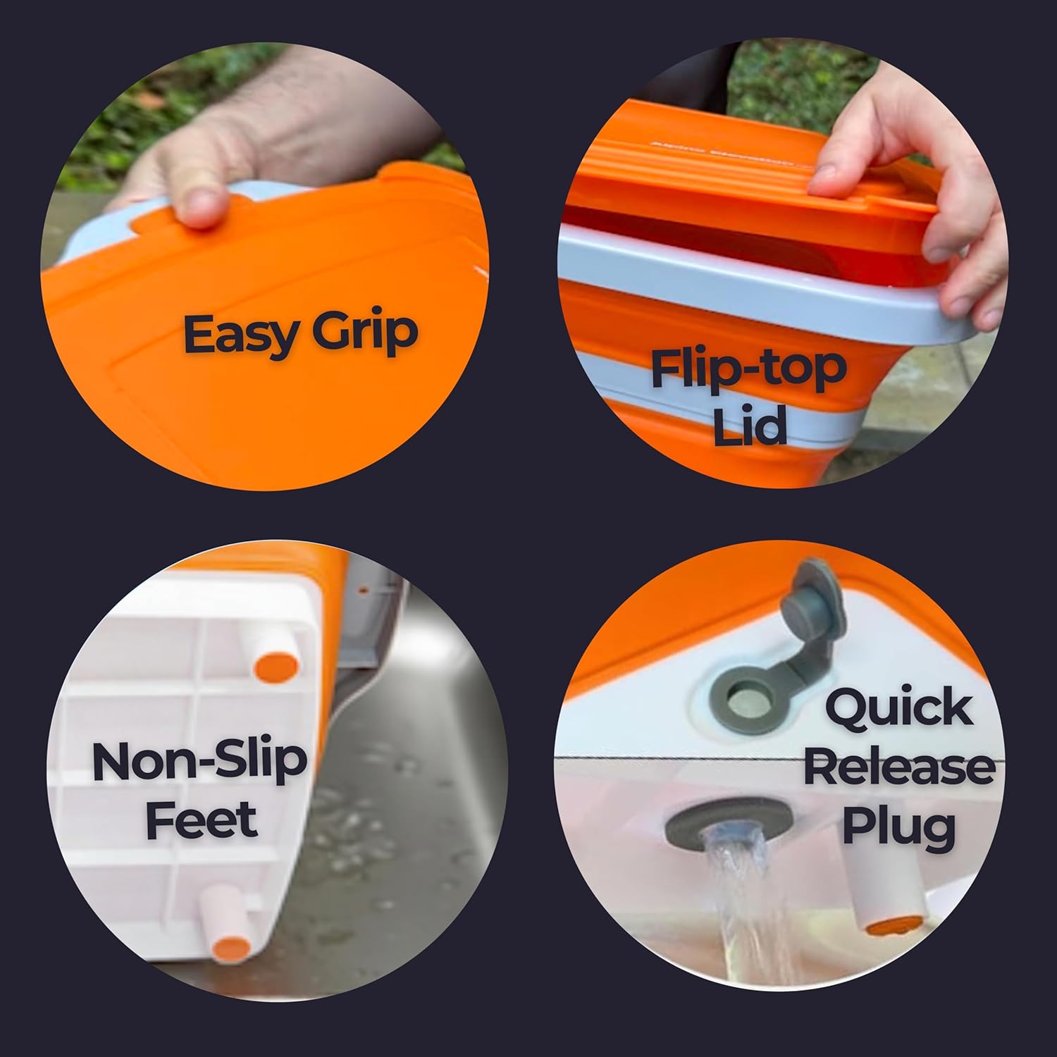 - Shape-Shifting Magic – Collapsible Design – Use fully expanded for large meal prep, half-collapsed for small batches, or fully flat for slicing or serving. Folds down to 1.5" for easy storage—perfect for camping, BBQs, RVs, tailgating, and small kitchens.