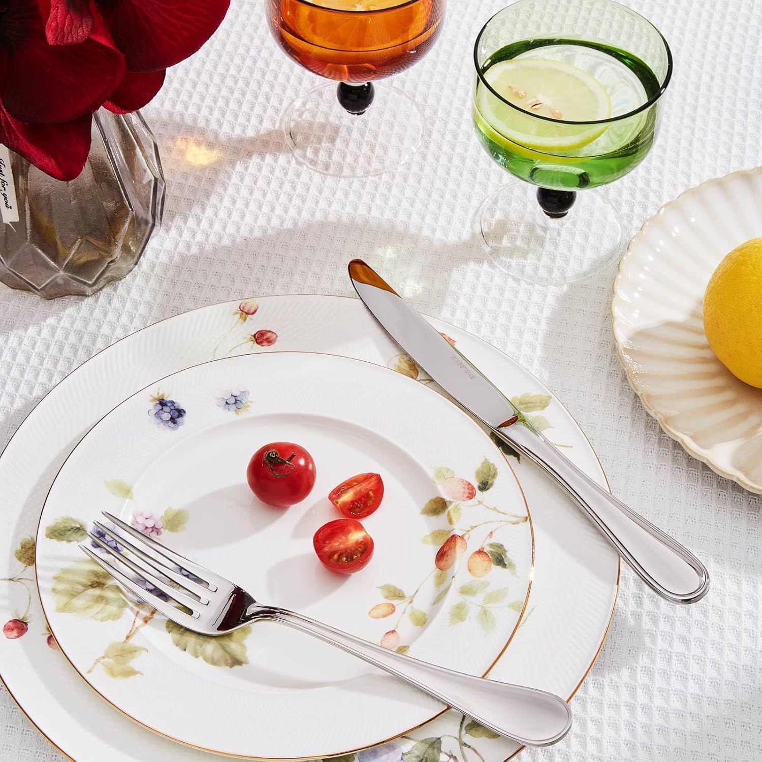 - 18/10 Finest material:The silverware is made of the highest quality 18/10 stainless steel, which has strong anti-corrosion and rust resistance compared to other materials. The solid structure of this material makes the flatware durable and will never bend, providing you with long-lasting service and beauty.