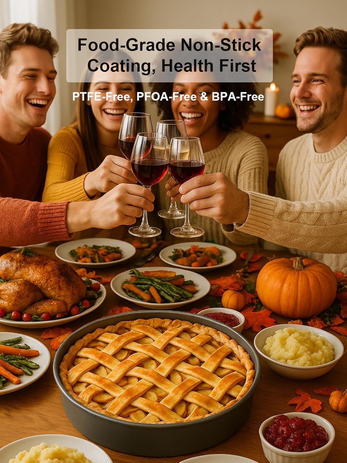 - 【Premium Non-Stick Surface--Healthy First】 Our metal pie pans feature a top-tier Xylan series coating by Whittford, an American coating brand, coupled with the innovative Plantinum-3X double-sided three-layer spraying process. This ensures a safe and easy-to-demould baking experience. The coating is completely free from PTFE, PFOA, and BPA, making it a healthy choice for all your baking needs.