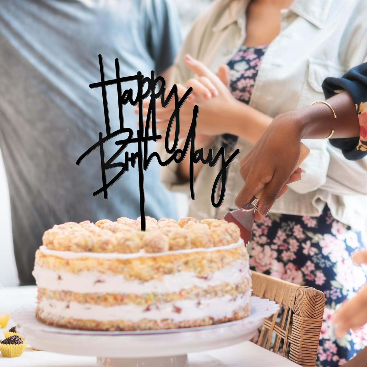 1 PCS Black Happy Birthday Cake Topper, 5.3 Inch x 7.2 Inch Acrylic Cake Topper Happy Birthday Cake Sign, Birthday Cake Decorations for Party Dessert, and Anniversary Supplies