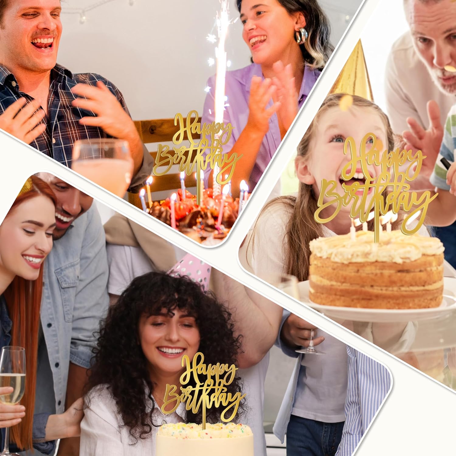 - Package Includes: Each set includes 1 PCS gold happy birthday cake topper (5.1 IN x 7 IN), sized to fit and adjustable in depth to ensure a secure fit for any size cake or dessert.