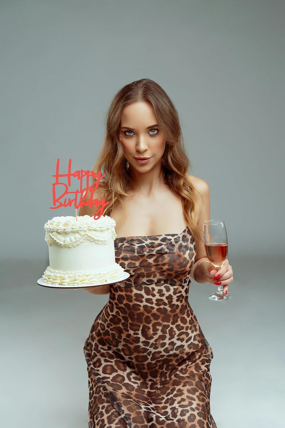 Happy Birthday Cake Topper - Glitter Red Birthday Cake Top Decorations (Red)