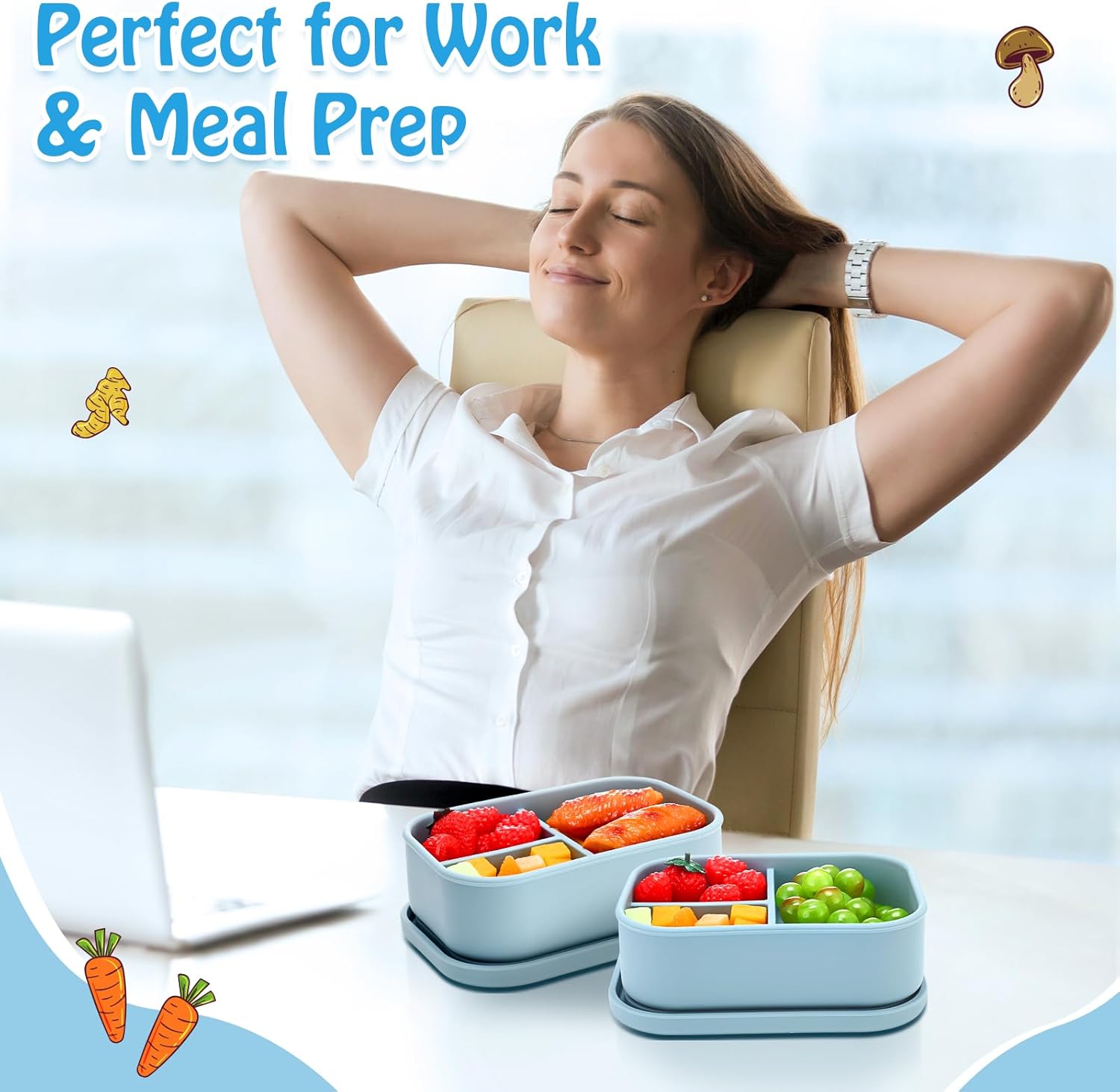 - Adequate space in compartments: Each silicone lunch box has 3 compartments, providing ample space to comfortably accommodate your meals. This design not only allows your food to be neatly separated, but also helps control portions and promote a balanced diet