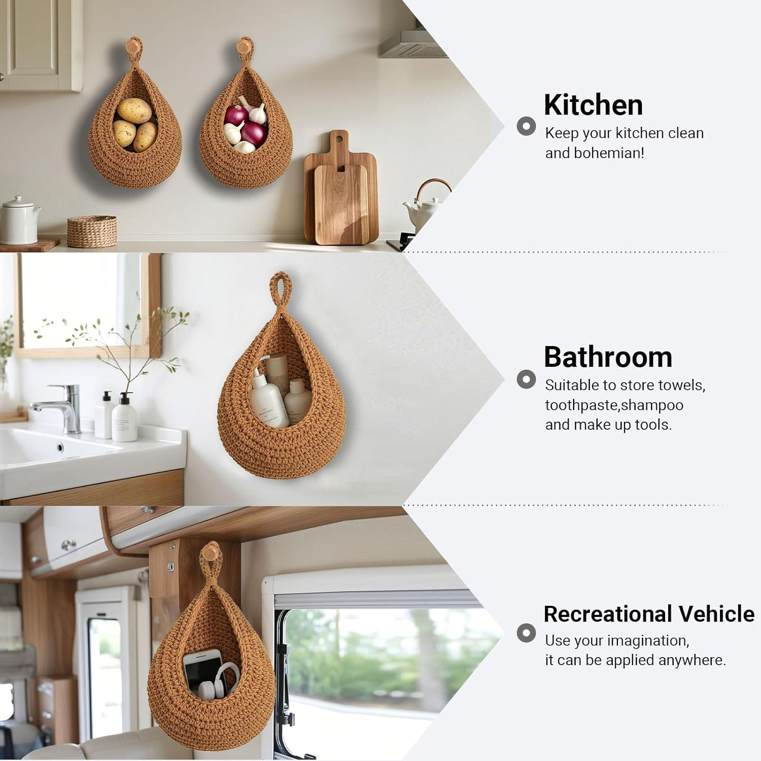 - Product Usage: These wall mounted storage baskets can be hung on the walls of the kitchen and the restaurant for storing fruits, flowers, plants and vegetables. They can also be placed in bathrooms, bedrooms for a wide range of uses, making your space more bohemian