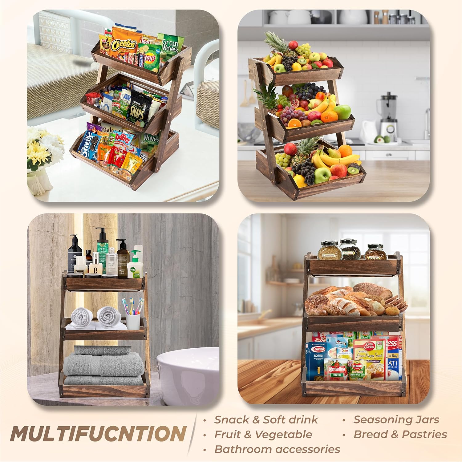 - ✔️ SPACIOUS HOME STORAGE DISPLAY: Each level of this large wooden fruit basket can hold more than a dozen fruits and vegetables. Once your kitchen is organized, healthy cooking will be a breeze!
