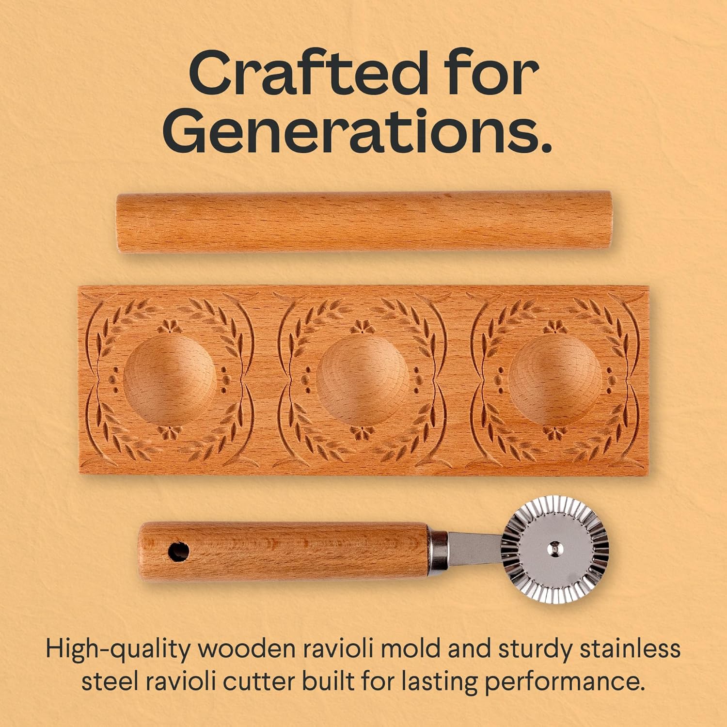 - DURABLE & HIGH-QUALITY PASTA TOOLS - Enjoy heirloom-quality craftsmanship with our sturdy wooden ravioli maker and precise pasta cutter wheel. Built to last, these homemade pasta tools deliver consistent, restaurant-quality results every time.