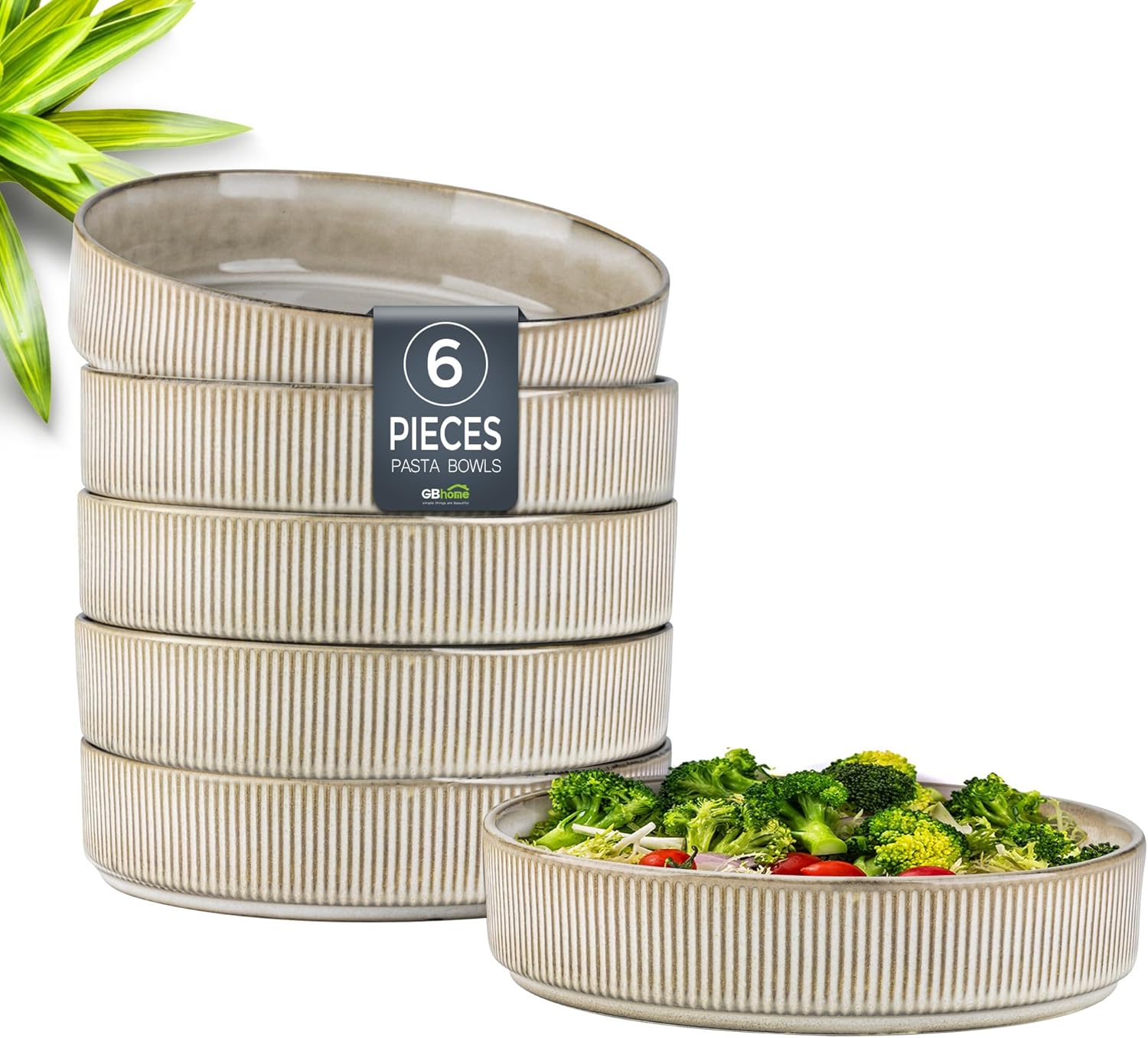 - Premium Stoneware Set of 6 Deep Pasta Bowls (7.5" Wide): Enjoy ample serving space with these perfectly sized 7.5-inch wide pasta bowls, The set includes 6 bowls.Perfectly designed not just for pasta, but also ideal for serving salads, fruits, oatmeal, cereal, soups, rice bowls, desserts, and more – from breakfast to dinner.