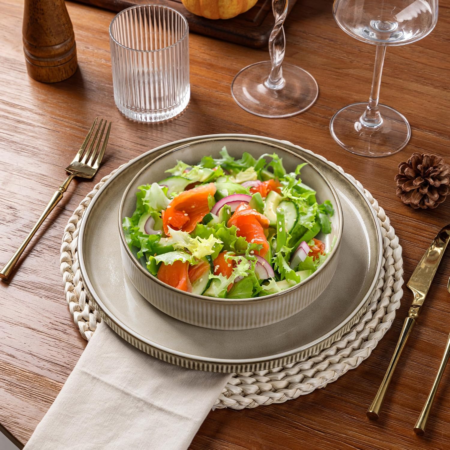 - Healthy, Lead-Free & Chip-Resistant: Crafted from premium, double-fired ceramic, this dinnerware is lead-free and cadmium-free, ensuring no harmful chemicals leach into your food. The durable stoneware construction makes it exceptionally chip-resistant and built for long-lasting daily use.