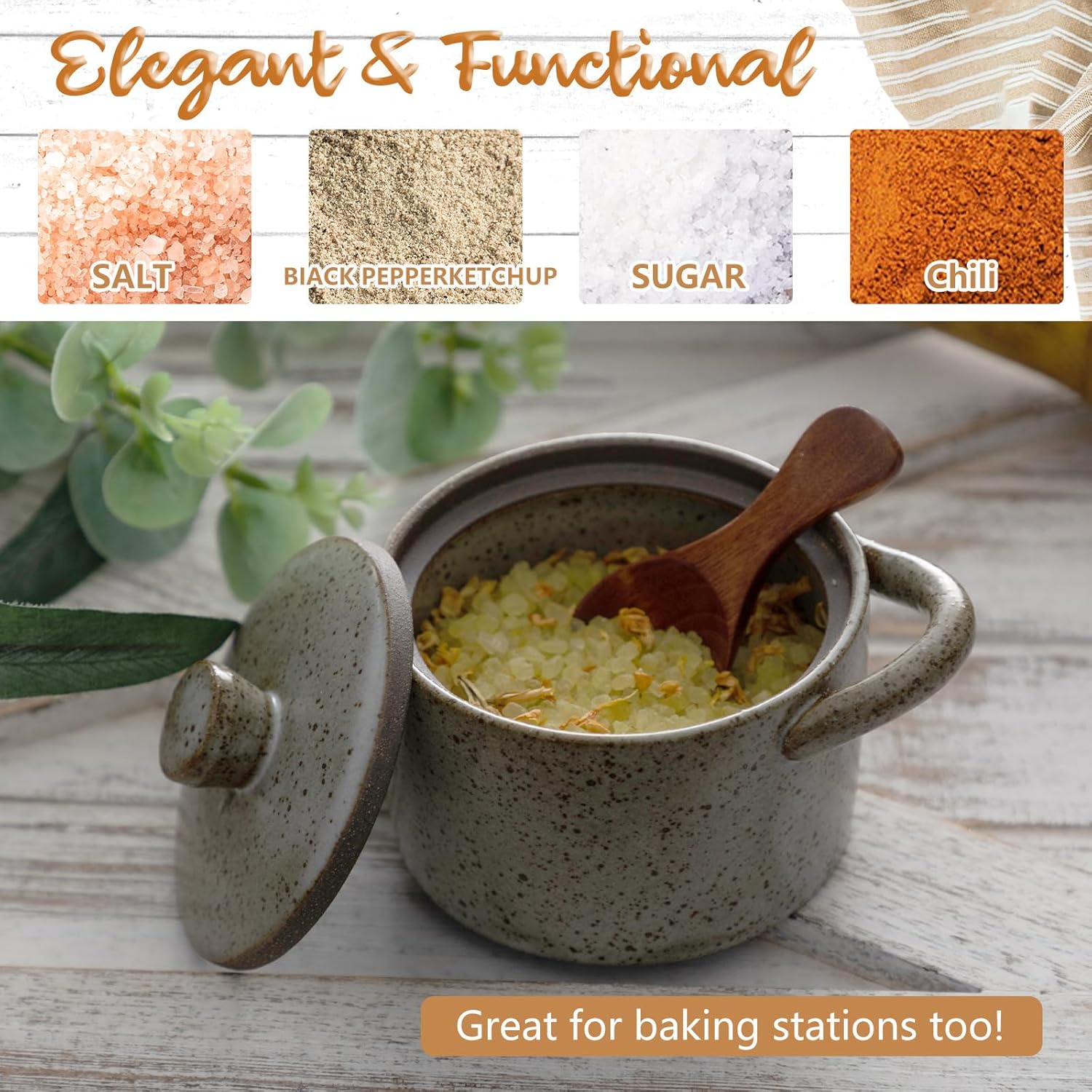 - Multi-Purpose Functionality: beyond storing salts and spices, this speckled salt cellar with lid is ideal for holding small trinkets, enabling diverse usage around the home; Whether in the kitchen or as part of your home decor, its utility is unmatched