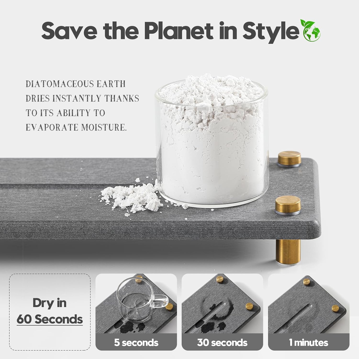 - 【Sustainable Materials】Diatomaceous earth dries instantly thanks to its ability to evaporate water. Safe, Sustainable and Long-lasting.