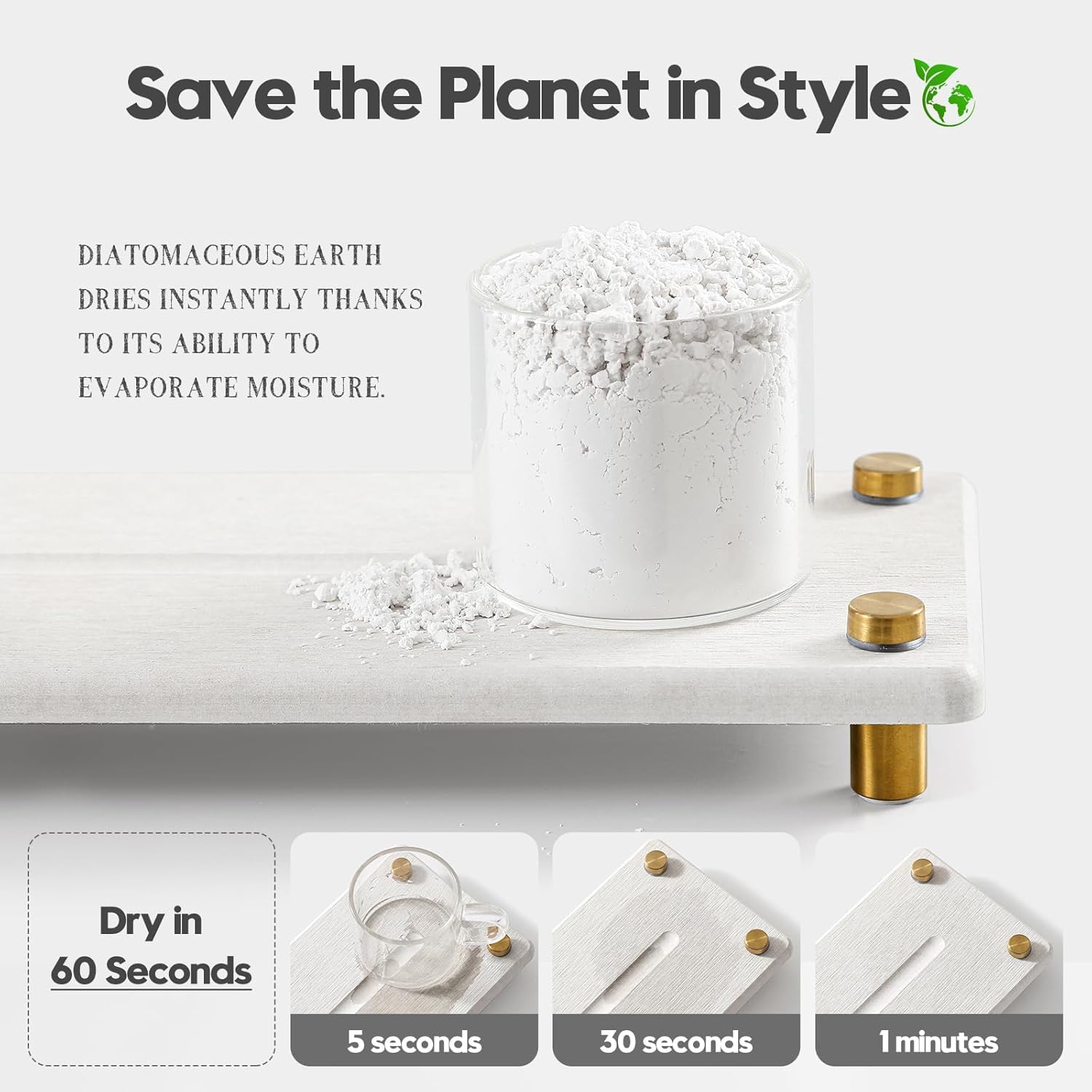 - 【Sustainable Materials】Diatomaceous earth dries instantly thanks to its ability to evaporate water. Safe, Sustainable and Long-lasting.