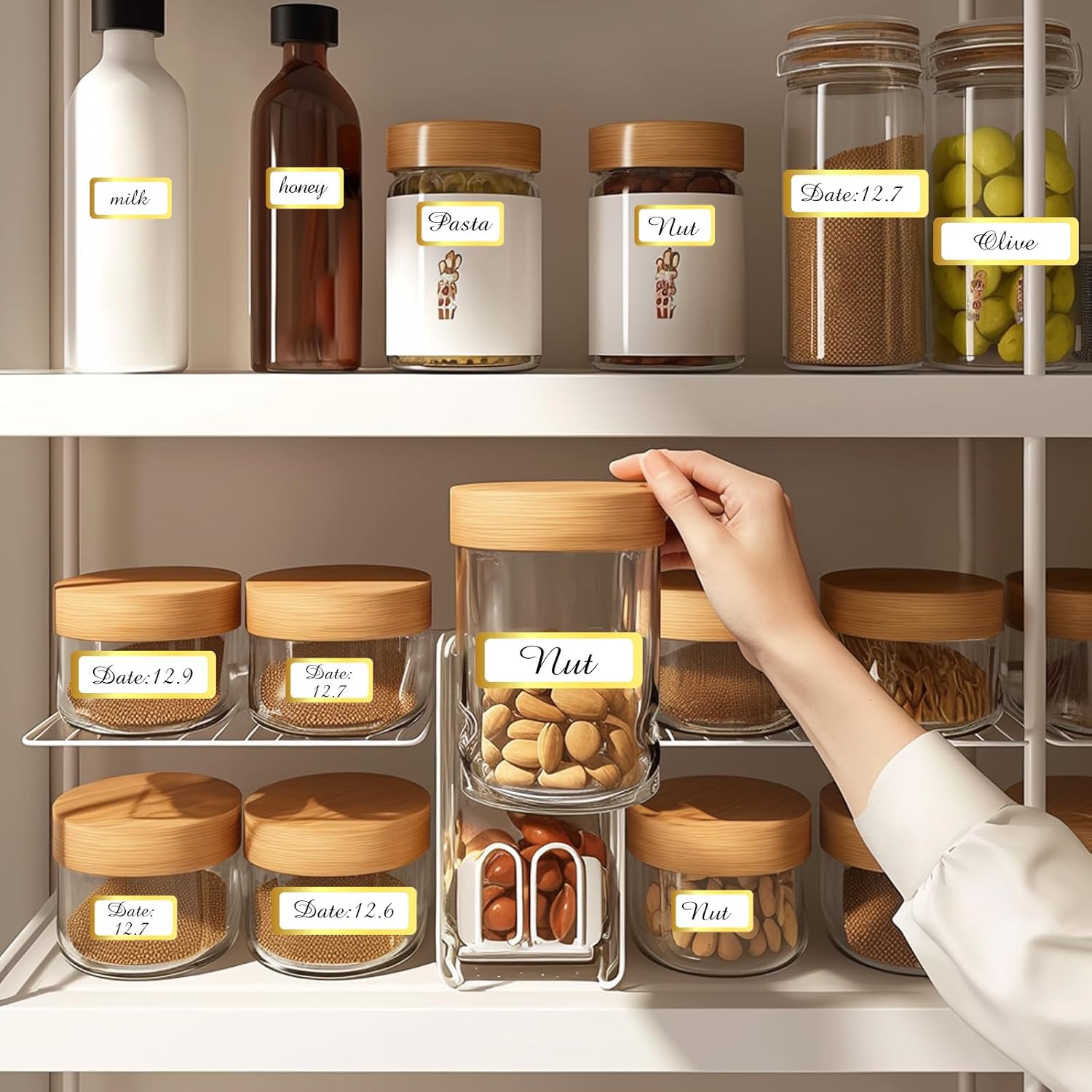 - Gold Border+ Bright Color: Attractive designs will catch your eyes at first glance and make your storage easily identified. It'll save you a lot of time