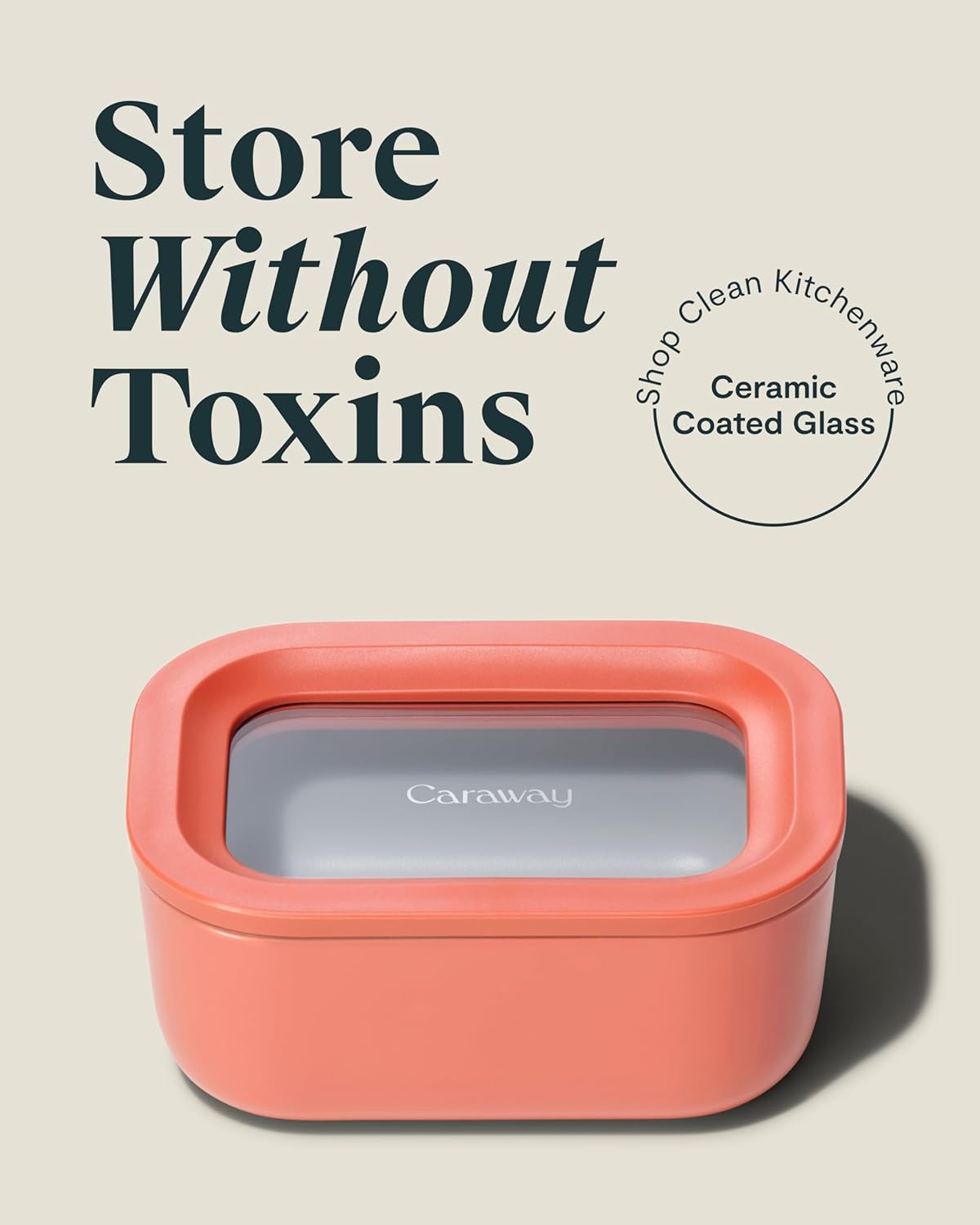Caraway 2pc Glass Food Storage Set - 2.6 Cup Food Containers (2) - Non-Toxic Ceramic-Coated Glass - Air Release Technology - Compact & Stackable Design - Perracotta