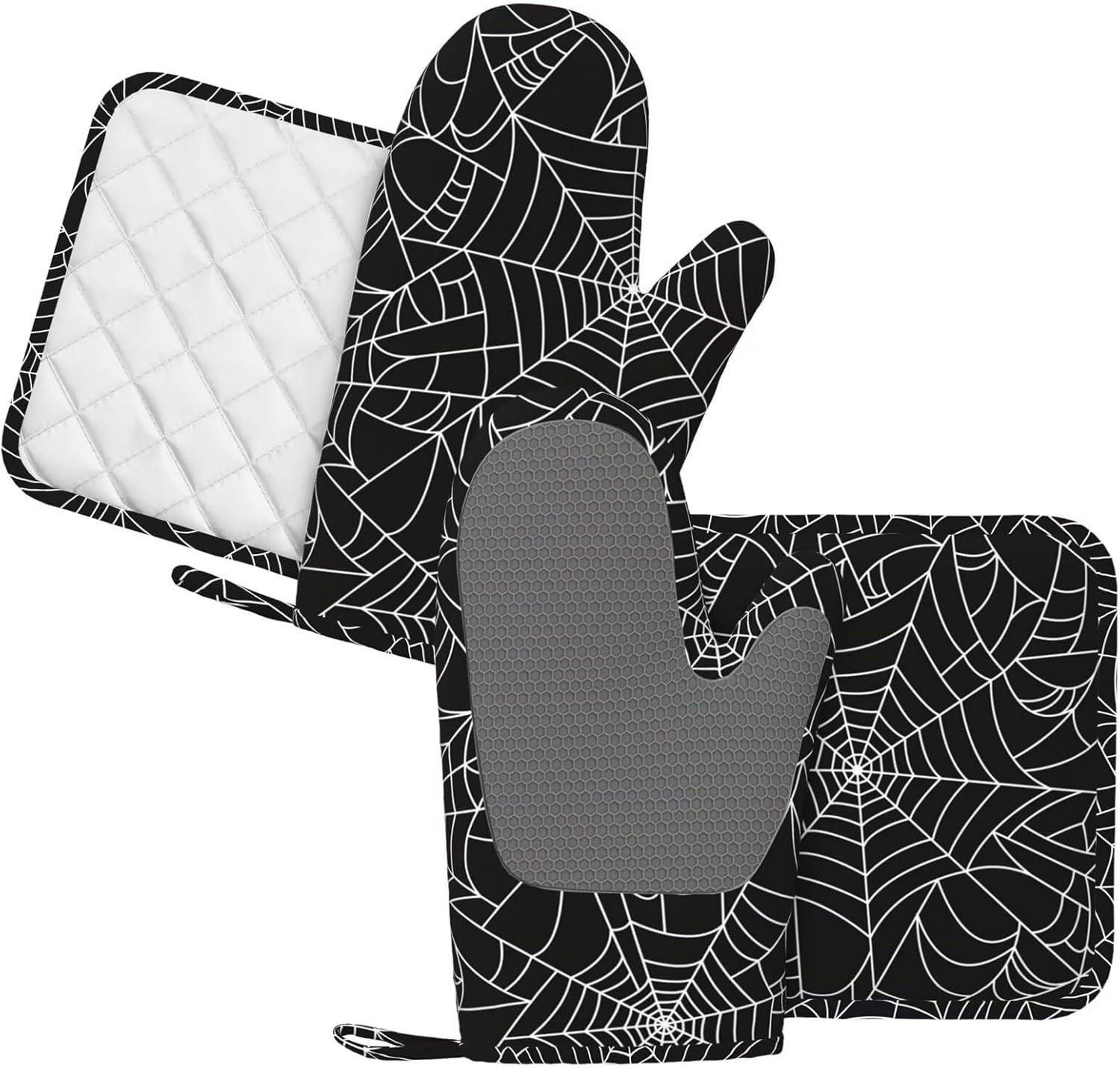 - NON-SLIP GRIP: The spiderwebs oven mitts feature a textured, non-slip surface that enhances your grip and control when handling hot items. This provides you with a secure hold, reducing the risk of accidental slips or drops while transferring dishes from the oven or stovetop