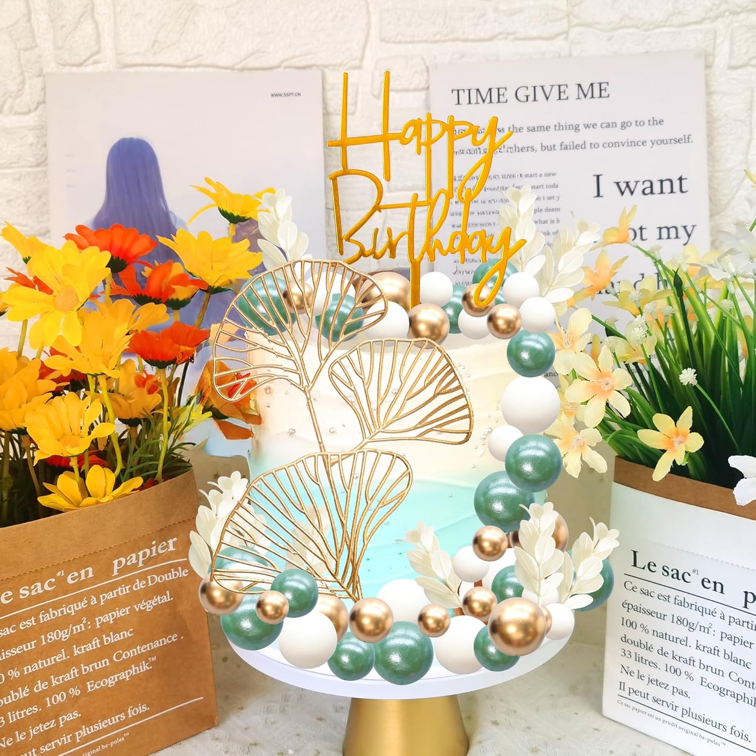 - -Package included: 1Pc Acrylic Cake Topper + 10Pc Grass + 45Pcs Mix Size Balls + 1Pcs Ginkgo Leaf. Size as the picture shows. These Balls Cake Topper Decorations are so chic and funny that make your Graduation party a big hit.