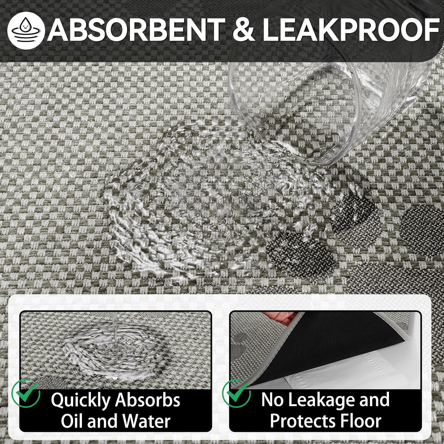 - Ultra-Absorbent & Quick-Drying Made of 800GSM microfiber, these absorbent kitchen mats instantly soak up spills and footprints. The dense pile traps moisture yet dries 3x faster than cotton rugs—perfect near sinks!