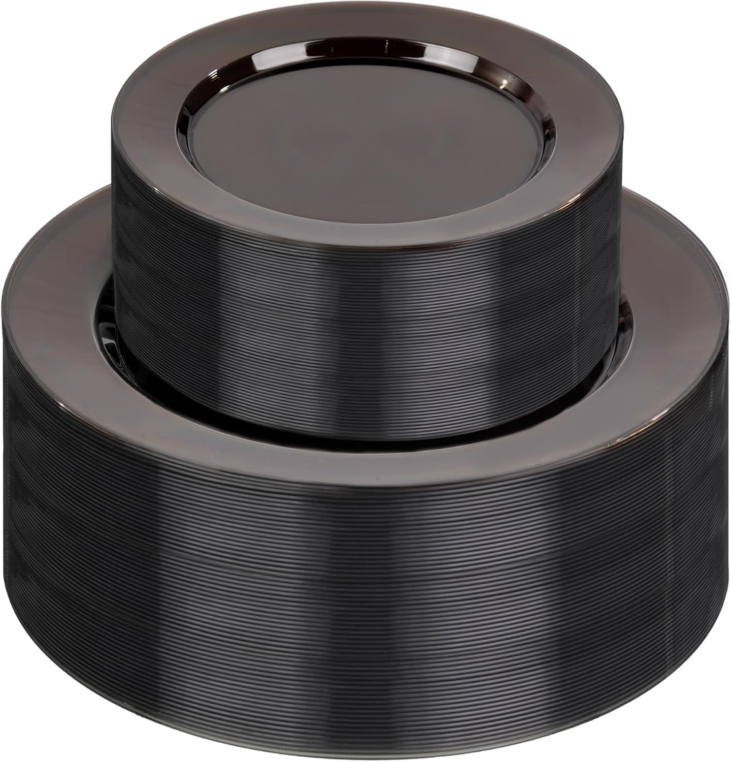 I00000 102 Pcs Clear Black Plastic Plates, Black Disposable Party Plates Include 51 Dinner Plate 10’’ and 51 Dessert Plate 7’’ Perfect for Birthday, Party & Wedding