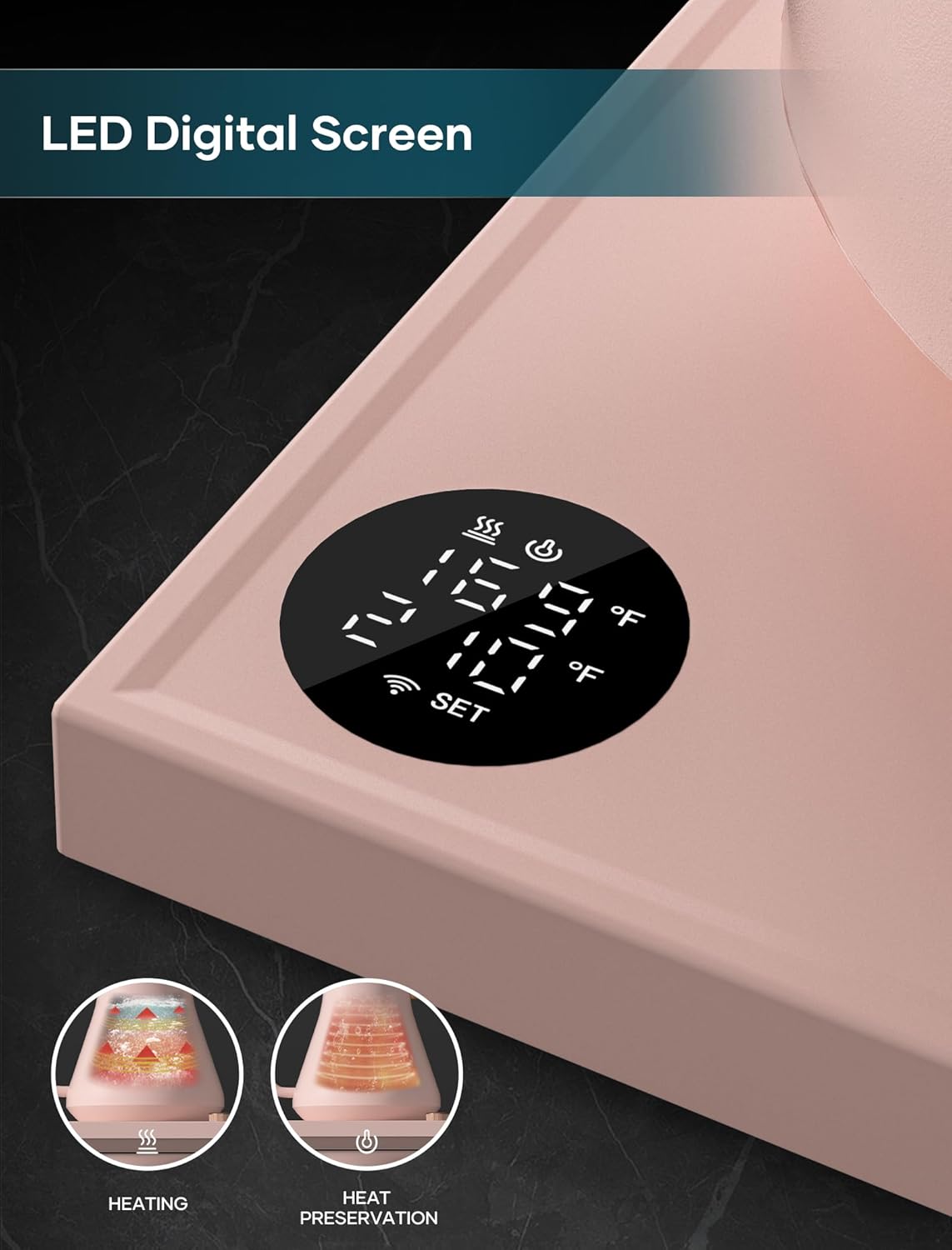 - ±1℉ Temperature Accuracy - The intelligent base's built-in temperature control program. The program will adjust the heating power when the water temp approaches the desired temp according the temp probe detects the temp change.