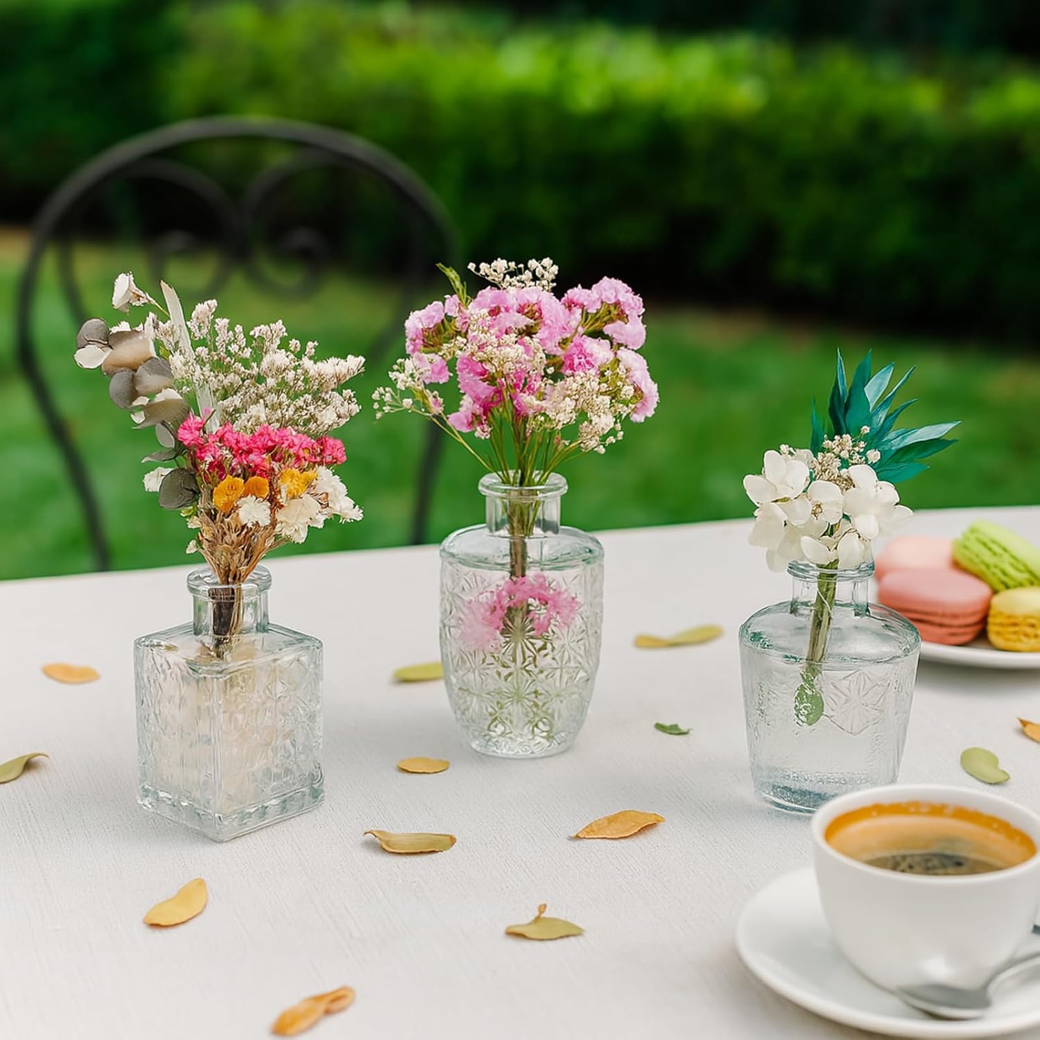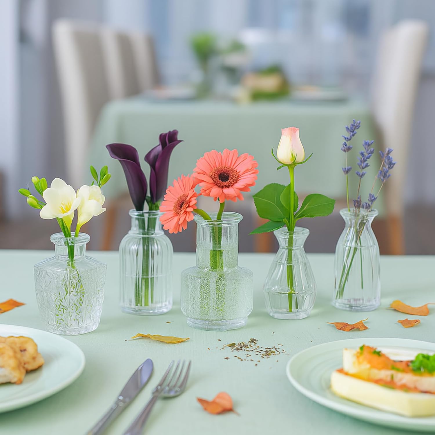 - Applicable Scenarios: Suitable for living room, dining room, store, party, bathroom, office, restaurant, bedroom, wedding and birthday, bringing you an elegant and romantic feeling. Display fresh or dried flowers, reeds, or essential oils in these mini flower vases,which are ideal for centerpieces on dining tables, shelves,or window sills.