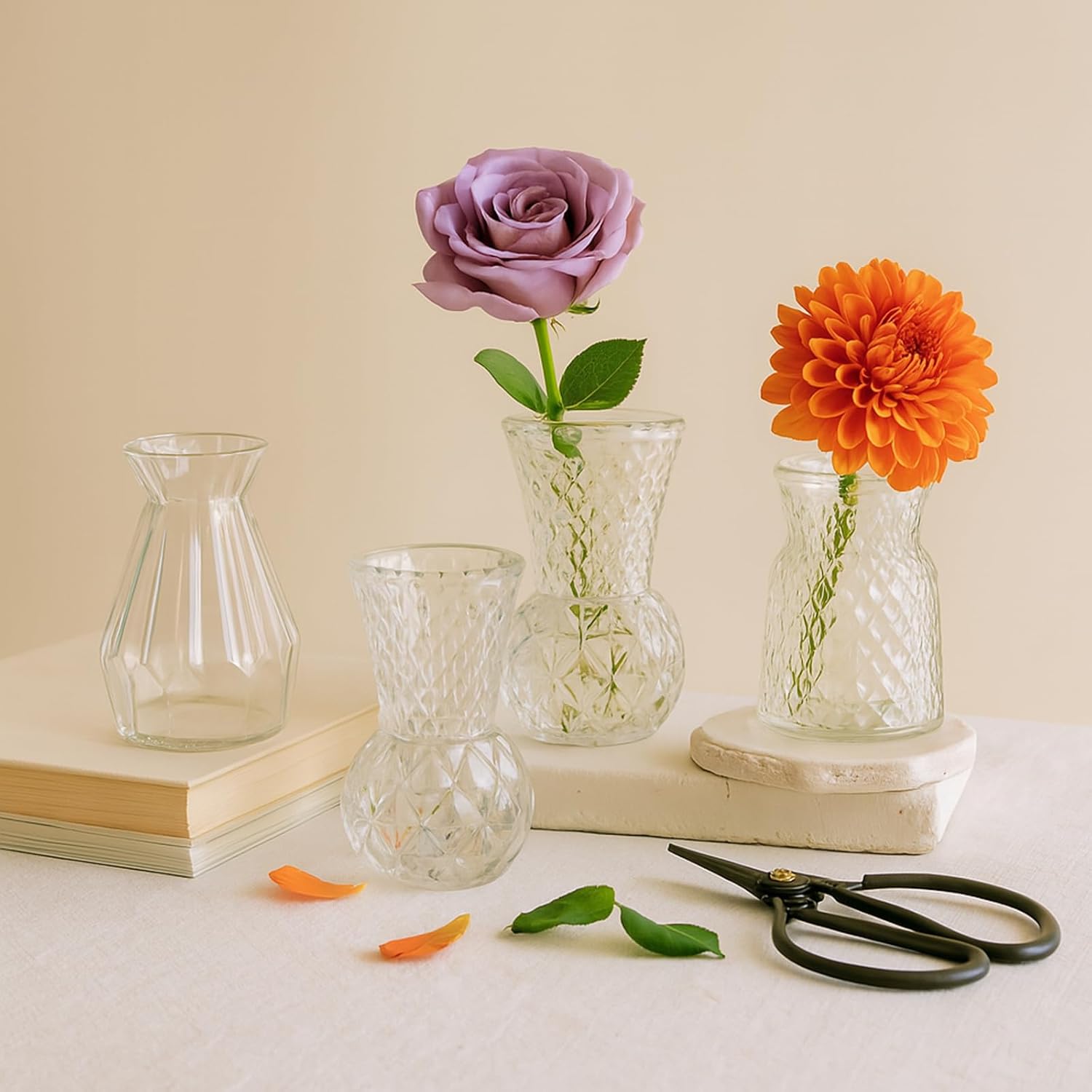 - Versatile Decoration: These clear glass vases can be used for fresh flowers, silk flowers, dried flowers, greenery, branches, feathers, or other decorations. Fill these bud vases with essential oils to enjoy your favorite fragrance. You can insert any kind of flowers or greens to make your home look bright and cozy.