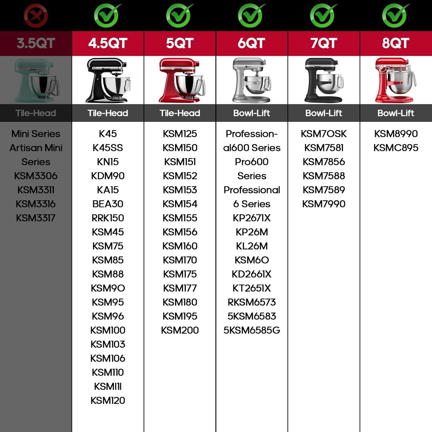 - EASY INSTALL: This kitchen aid mixer attachments with a ice cream bowl, dasher and drive assembly. The drive assembly port A is fit for 4.5-5QT Tilt-Head stand mixers, the port B fit for 6QT or larger Bowl-Lift mixers. IMPORTANCE: To install this kitchenaid ice cream attachment for kitchenaid 6QT bowl-lift mixer, please align bowl edge with back hooks first, then press down firmly until locked. Will prevent the ice cream bowl wobbling.