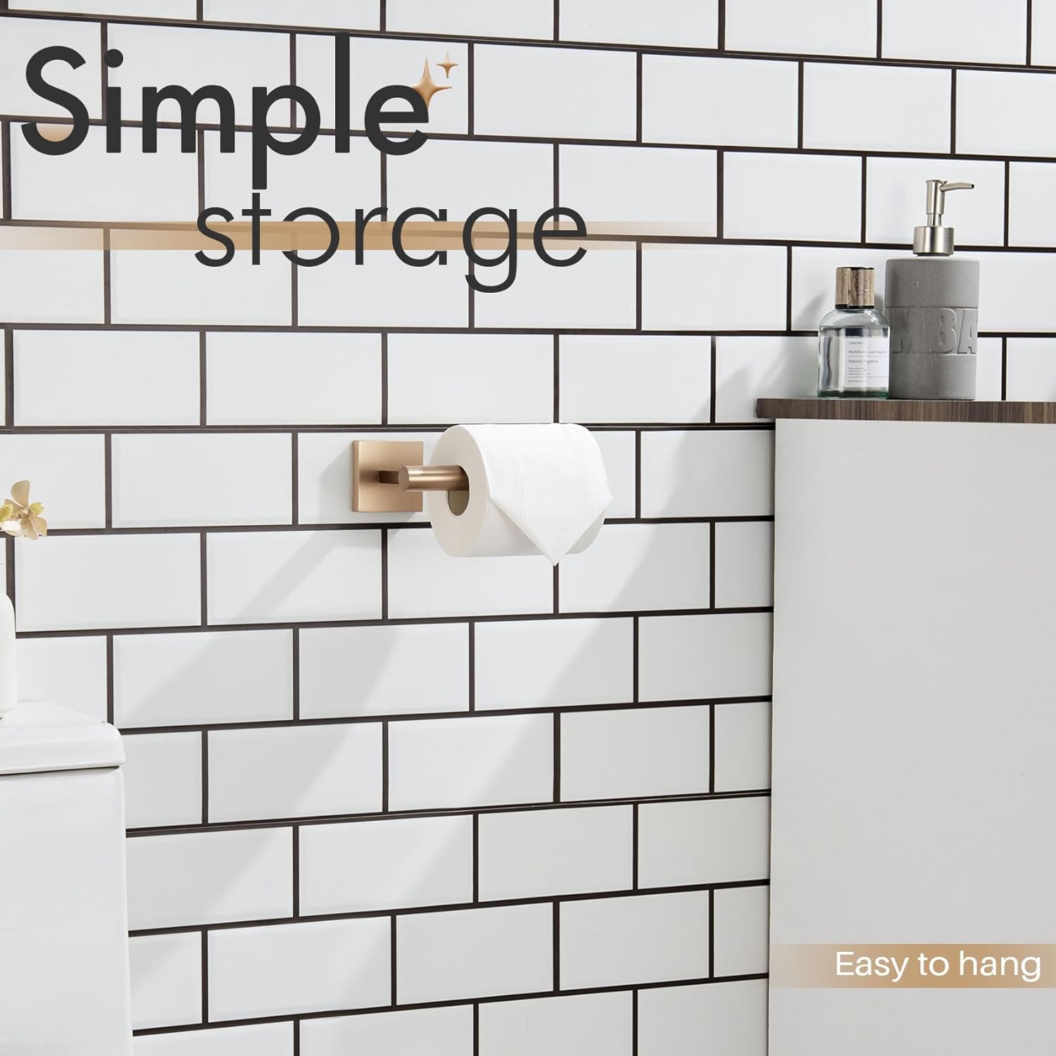 - ◄ CHAMPAGNE BRONZE ► The toilet roll holder is Champagne Bronze finish which is fingerprint-proof and water-proof. The surface covering of toilet roll holder is resisting daily scratches, corrosion, and tarnishing