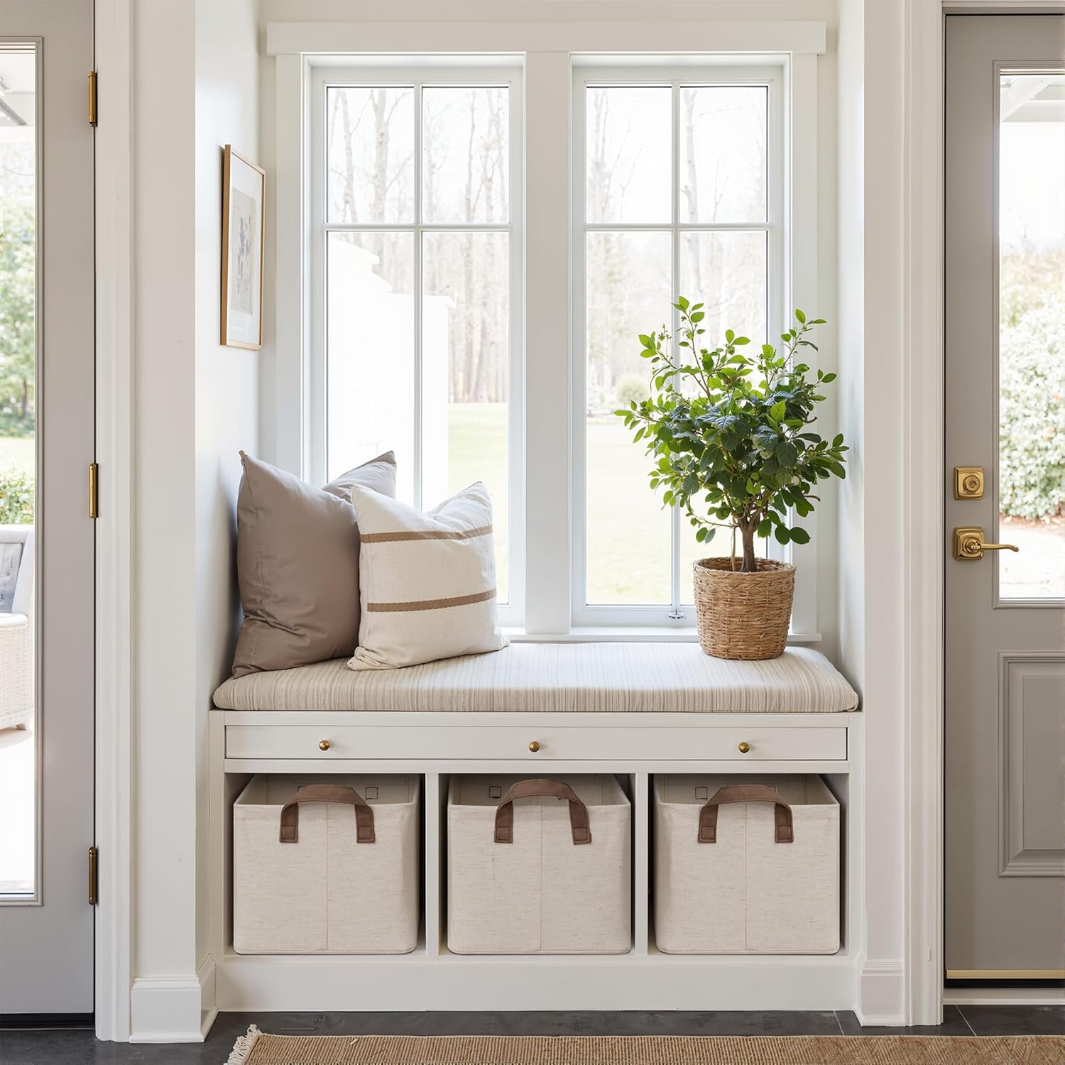 - Premium Quality: Made from high-quality fabric and reinforced with a heavy-duty MDF bottom board and a sturdy metal frame. The solid construction enables the storage bins to stand upright without support, even when empty.