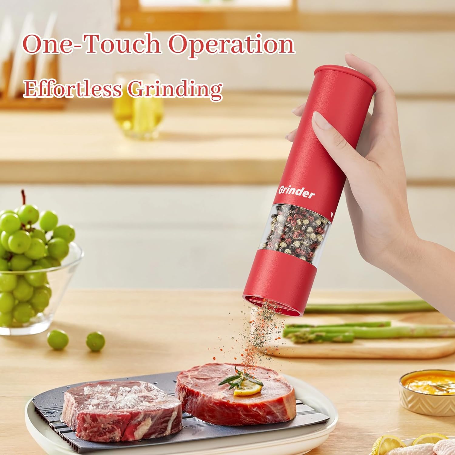 - Easy One-handed Operation & Adjustable Coarseness: Just hold the button for fresh spices. Choose the perfect automatic salt and pepper grinder set (also an electric/auto salt and pepper grinder set) by turning the knob anticlockwise. This salt and pepper automatic grinder set is more convenient than manual grinders—great for busy meal prep, kids, seniors, and those with arthritis, boosting your life quality.
