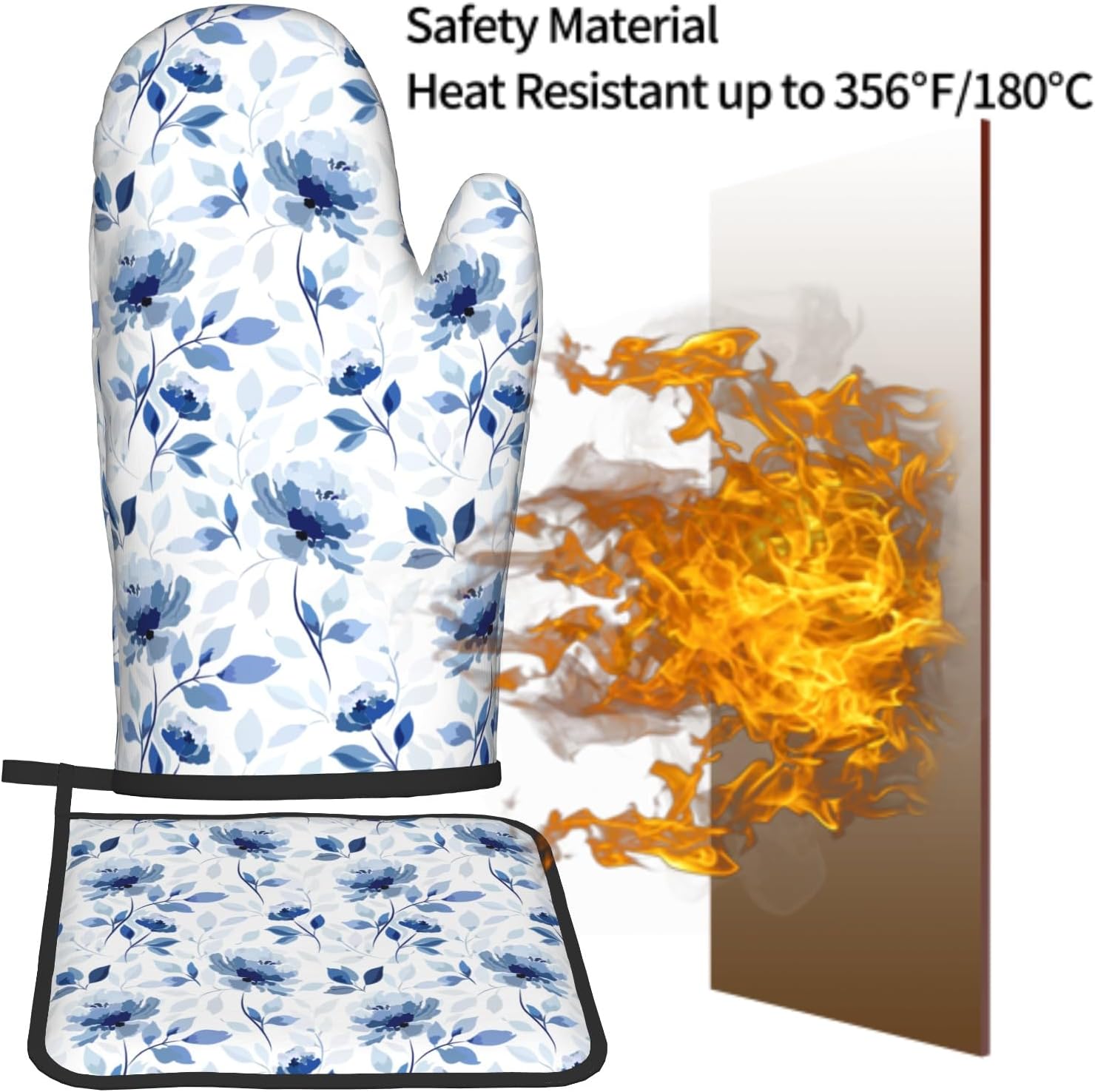 - 【Kitchen Cooking Set】Our elegant floral oven mitts and pot holders sets including 1 pcs non-slip kitchen oven gloves (7 x 11 in), and 1 pcs pot holders (8 x 8 in), Perfect for holding hot pots, pans, plates, bowls, and trays.