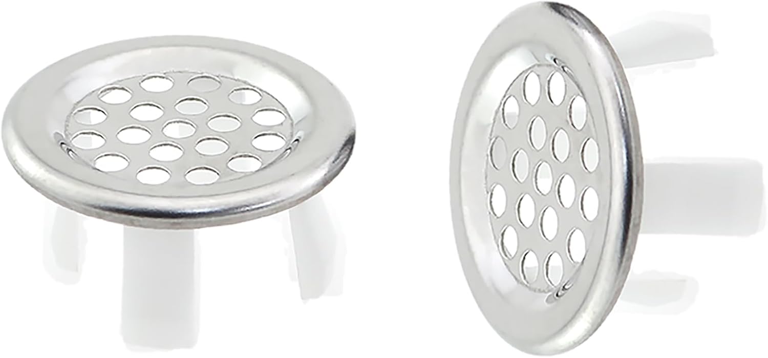 2PCS Kitchen Sink Drain Silver Stainless Steel Basin Overflow Decorative Cover 22-24mm Hole Inside Diameter Insertion Cap