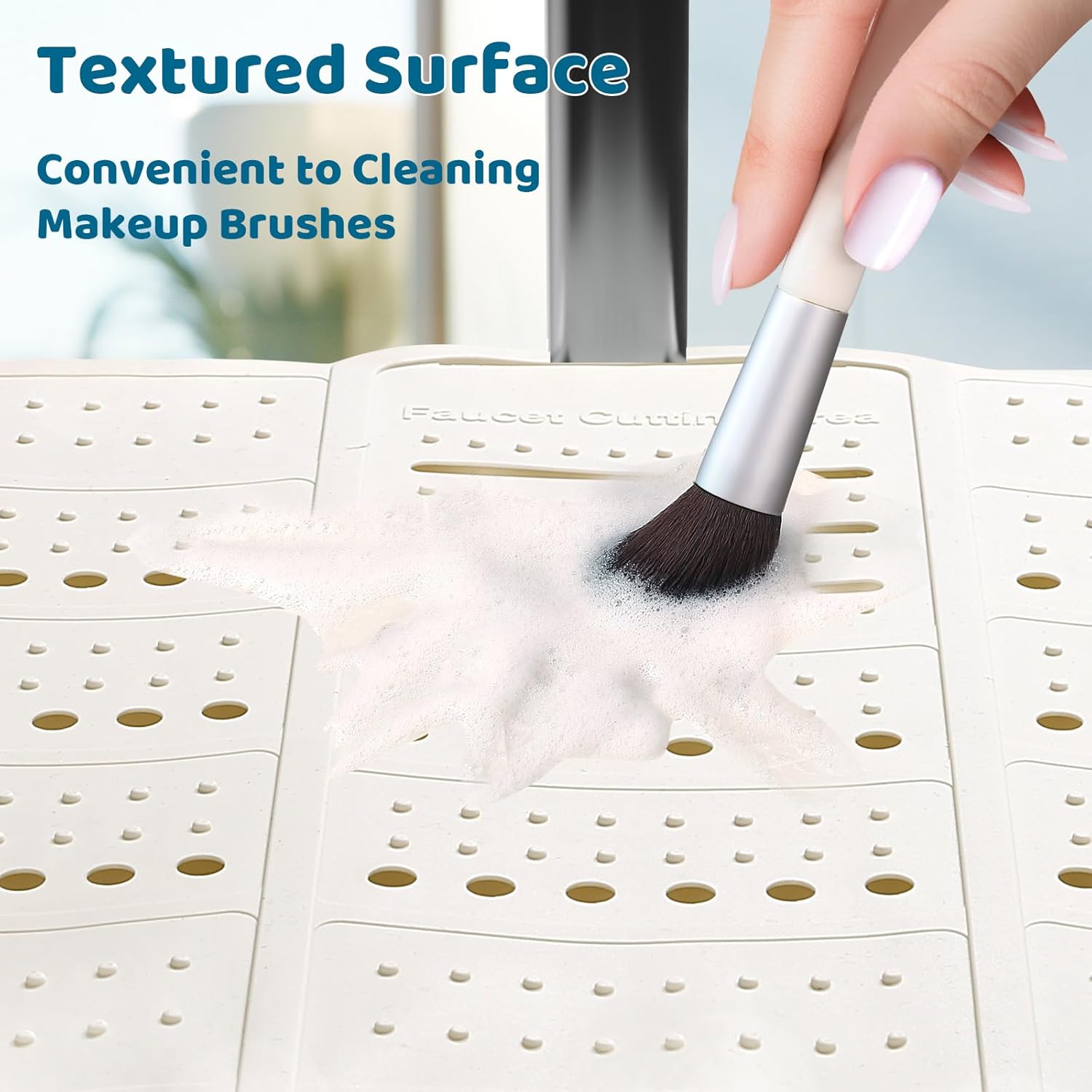 - High Quality: Crafted from high-quality silicone, this sink cover heat resistant up to 450 degrees Fahrenheit, safely place hot styling tools such as curling irons, hairdryers, or straighteners on its surface. And it with raised particle on the surface, convenient for you to clean your makeup brush.