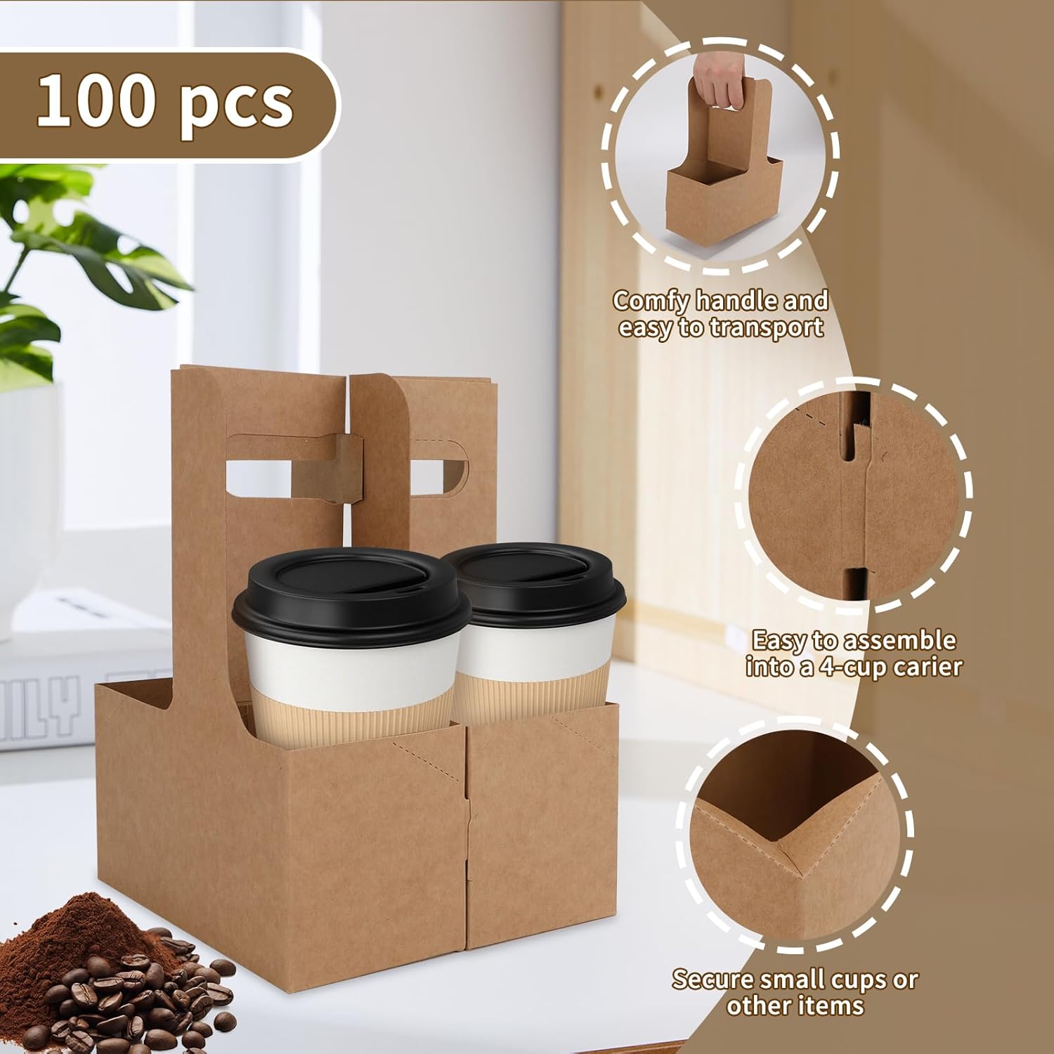 - Designed as a leak-resistant drink carrier with handle, this tray offers reinforced edges to keep your beverages secure on the go. The ergonomic grip adds comfort when carrying hot lattes or iced smoothies. Compatible with most 12-30oz sizes, this drink holder ensures reliable transport. Whether you're managing a mobile order or daily coffee runs, this coffee cup holder keeps drinks steady every time.