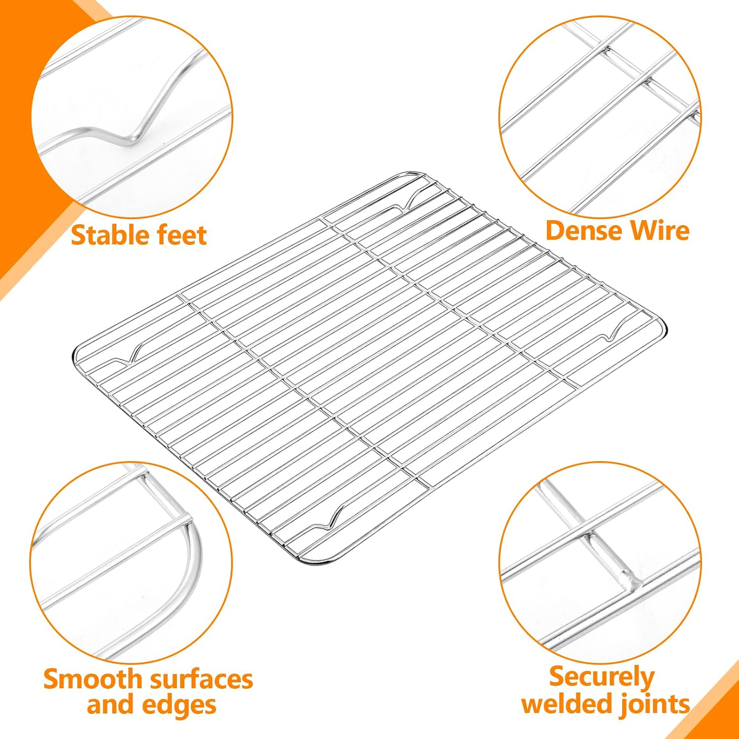 - Premium Material: This cooling rack is made of high-quality stainless steel that is safe, rust-resistant, and maintains its shine. It is sturdy and durable, with each wire seamlessly welded for long-lasting use.