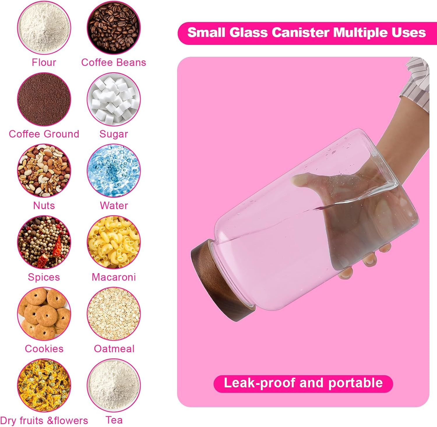 - 【WIDE APPLICATIONS】 Glass kitchen canisters for pantry organization and storage are suitable for storing various dried ingredients to retain their freshness, with clear glass jars, you can easily see inside and quickly find the ingredients you need.Glass jars with wood lids perfect for storing dry food , such as,cookies,dried beans,pepper,oatmeal,jams,chutneys, rice, flour, tea, coffee, biscuits, candy,cheese,flour, sugar, seeds,etc. Keep your kitchen tidy and safe,saving space and convenient .