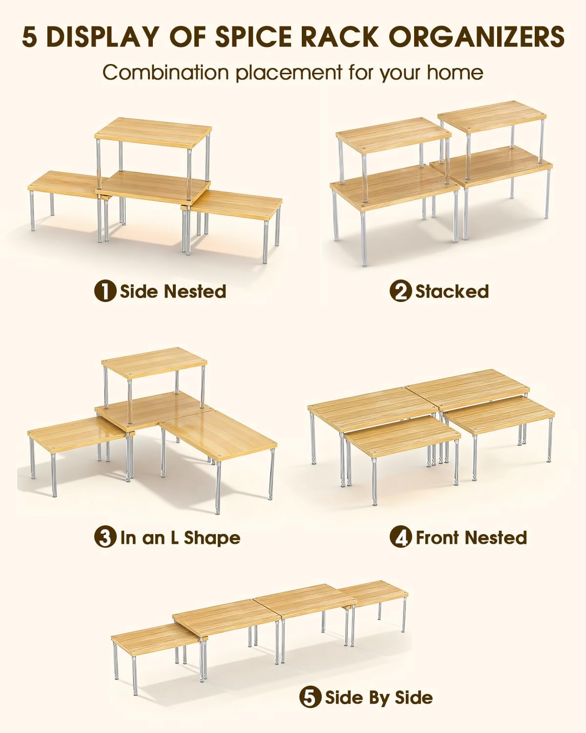 - Flexible Storage Solutions: Beyond spice racks! Use in bathrooms for toiletries, offices for supplies, or closets for accessories. Nestable design fits fridges (stack cans!), vanities (display makeup!), or desks (organize books!). One set = endless home solutions