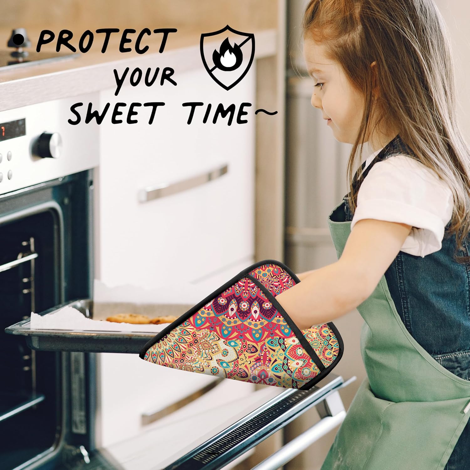 Colorful Abstract Mandala Floral Pot Holders for Kitchen, Boho Vibrant Ethnic Flower Botanical Heat Resistant Hot Pads and Oven Mitts for Baking Cooking