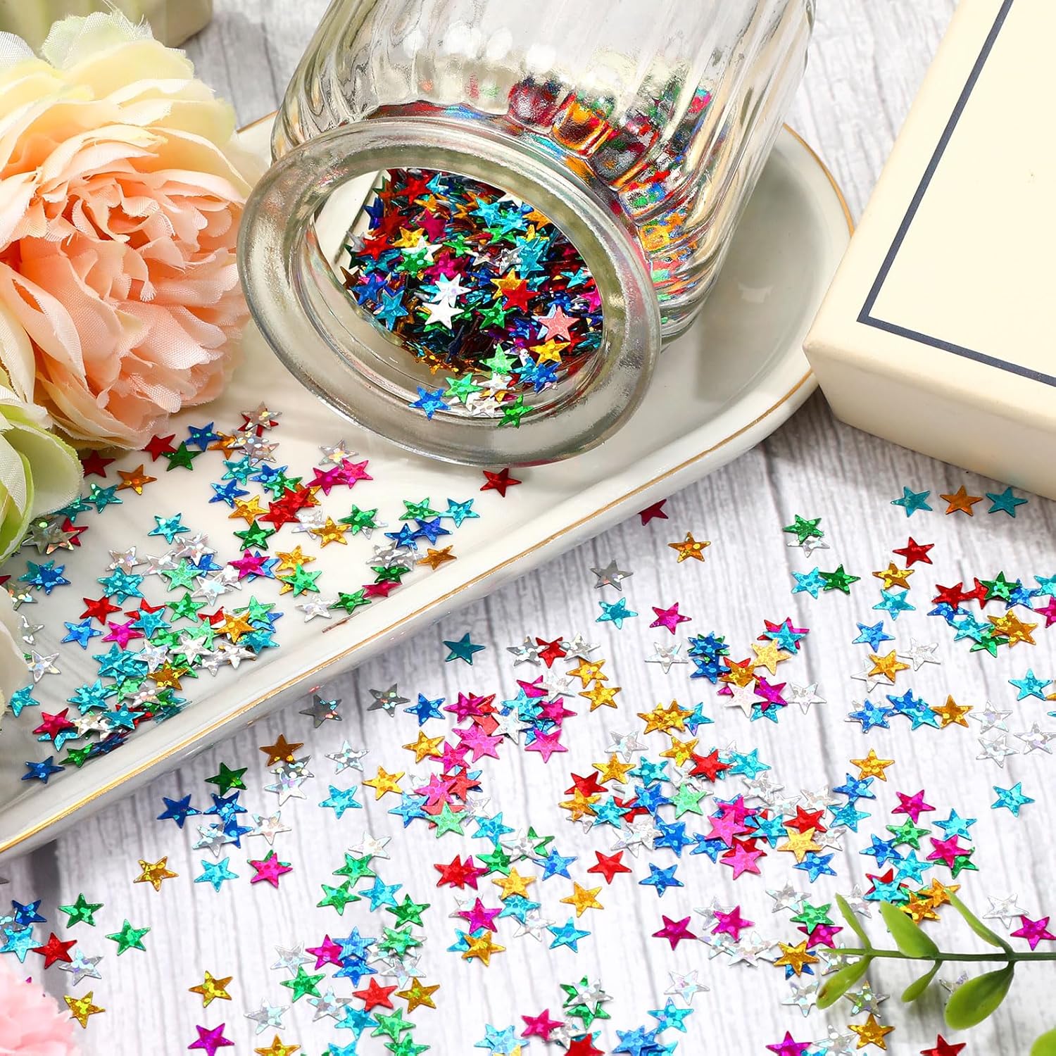 - Sparkling Rainbow Theme: Our star confetti for table has a dazzling rainbow color, with a size of 7 mm/0.27 inch. Star glitter is compact and lightweight, and can be matched with any decoration of various party themes to help you decorate various holiday parties
