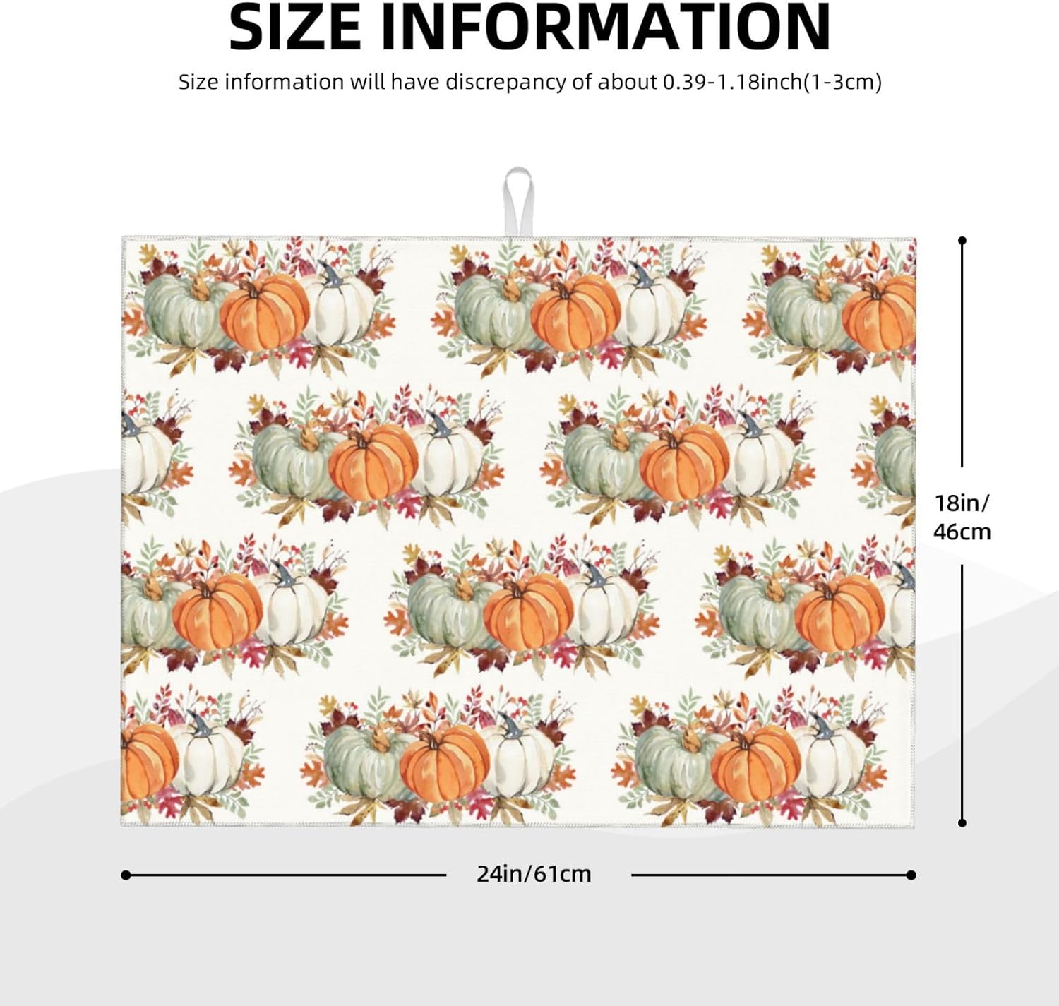 Fall Dish Drying Mat 18x24 for Kitchen Counter, Watercolor Pumpkin Leaf Decorative Absorbent Coffee Mat Dish Drying Pad Coffee Bar Dish Drainer Rack Mat Drainer Mat