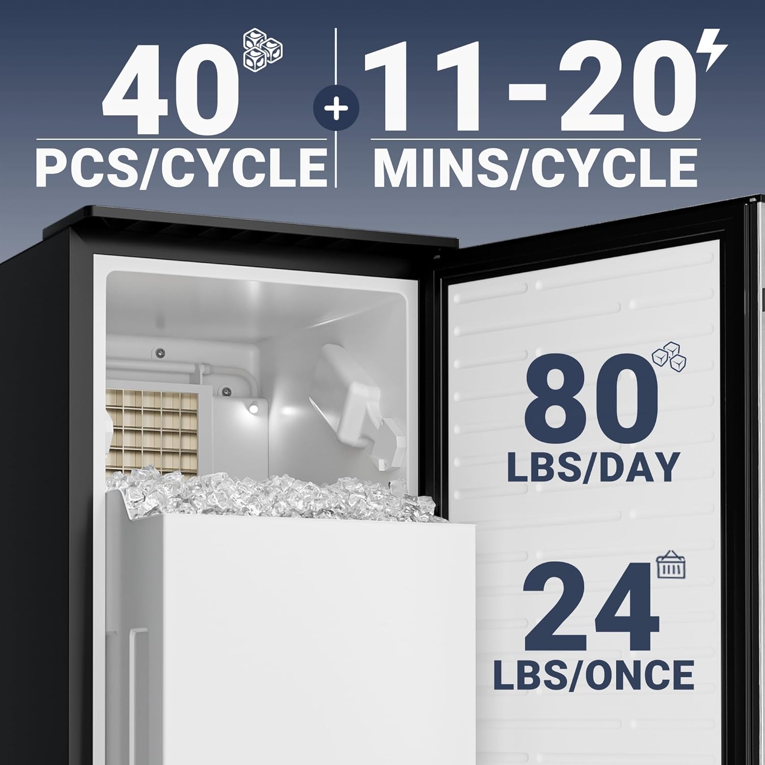 - Rapid & Large Ice Production: Our ice maker can produce 80lbs clear ice cubes one day, the average ice making time for each cycle just taking 8 to 16mins, which means that the under counter ice maker can meet your demand for ice efficiently, and let you enjoy the tasty ice cubes easily