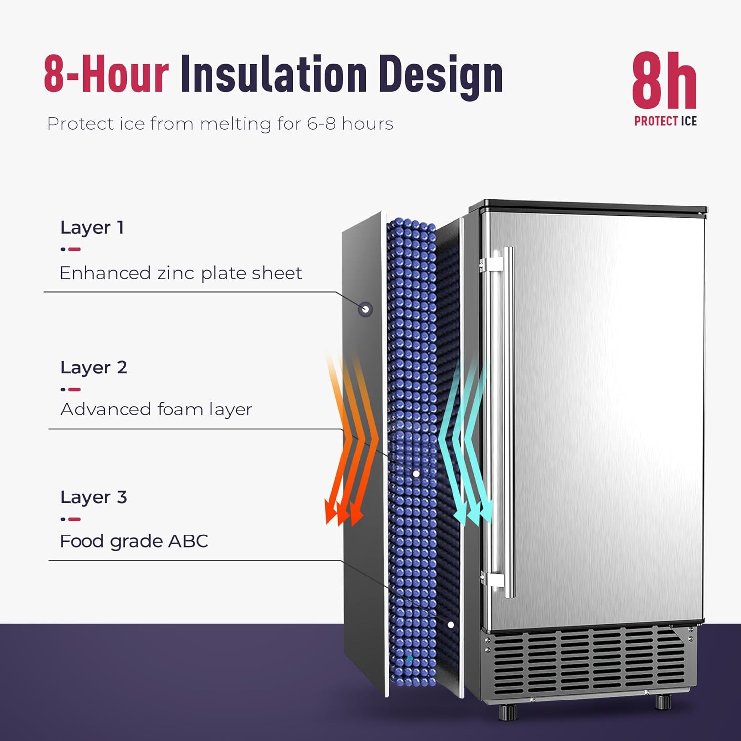 - Efficient & Adjustable Ice Cubes: Equipped with an efficient compressor and 3 layer insulation materials, the ice cubes that our under counter ice maker machine produce are clear and refresh, besides, you can also control the thickness of the ice cubes through the button to meet the need of various drinks, like smoothie/cocktail/whisky for daily use. These perfect cubes are ideal for bartending and home hosting