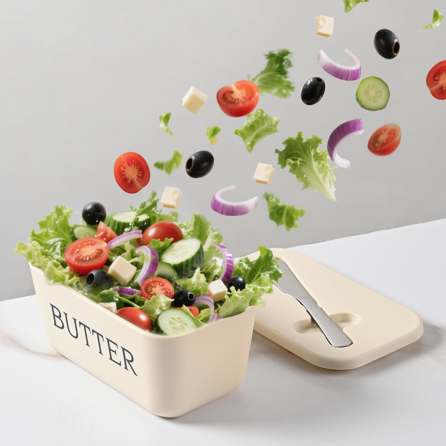 - 🔪 Includes Stainless Steel Butter Knife – Comes with a durable, rust-resistant butter knife that fits neatly on or inside the lid for easy access.