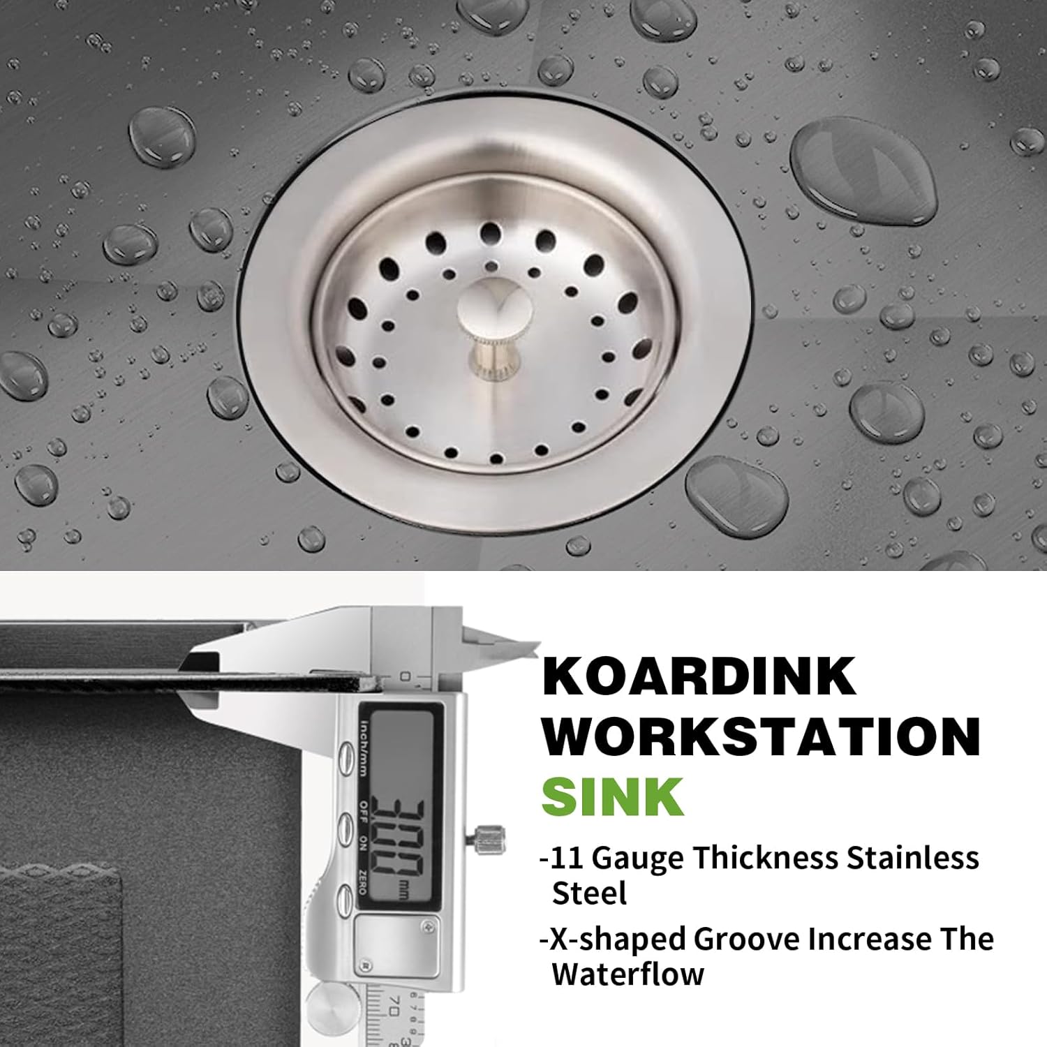 - Fast Drainage Design: X-groove located on the bottom surface of the drop in kitchen sink is design to guide the water towards the drain, minimizing water stagnation. X-groove and US standard drain assembly of kitchen sink also reduce the amount of time spent waiting for the sink to empty.