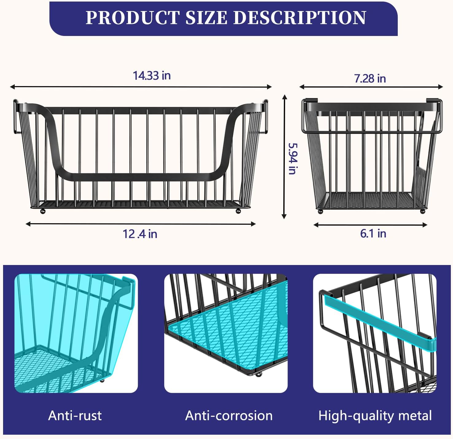 - FOCUS ON QUALITY AND YOUR EXPERIENCE: The edges of each stackable fruit basket are made with anti-scratch treatment, and the surface is reinforced with corrosion-resistant black powder coating, which effectively prevents rust and achieves a durable effect. We take your experience very seriously, so please feel free to use it.