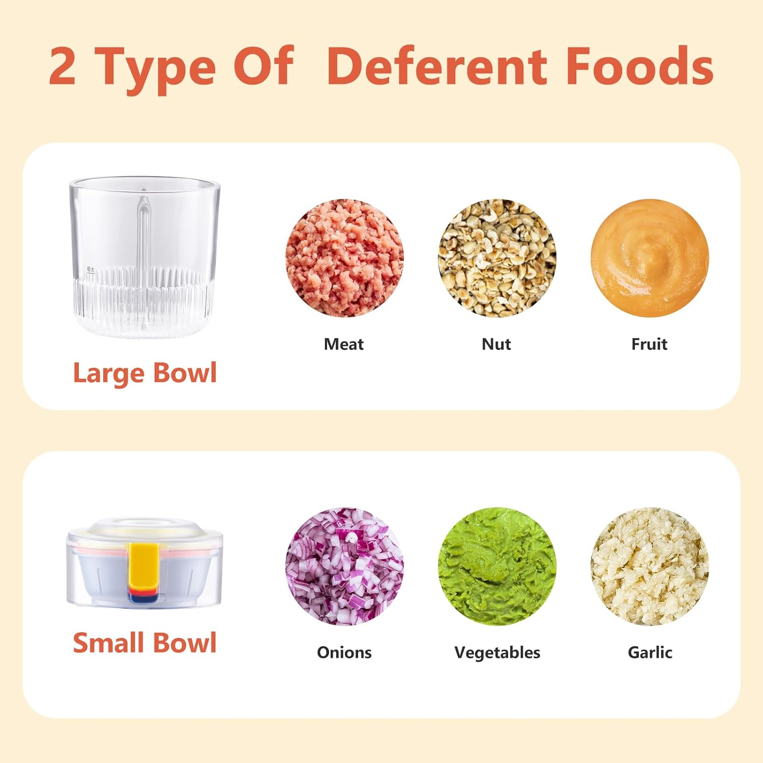 - 【Save Time & Space】Compact yet powerful! Our mini chopper replaces bulky appliances - perfect for small kitchens, RVs or dorm rooms. Chops meat, nuts or frozen fruit in just seconds and is easy to clean.