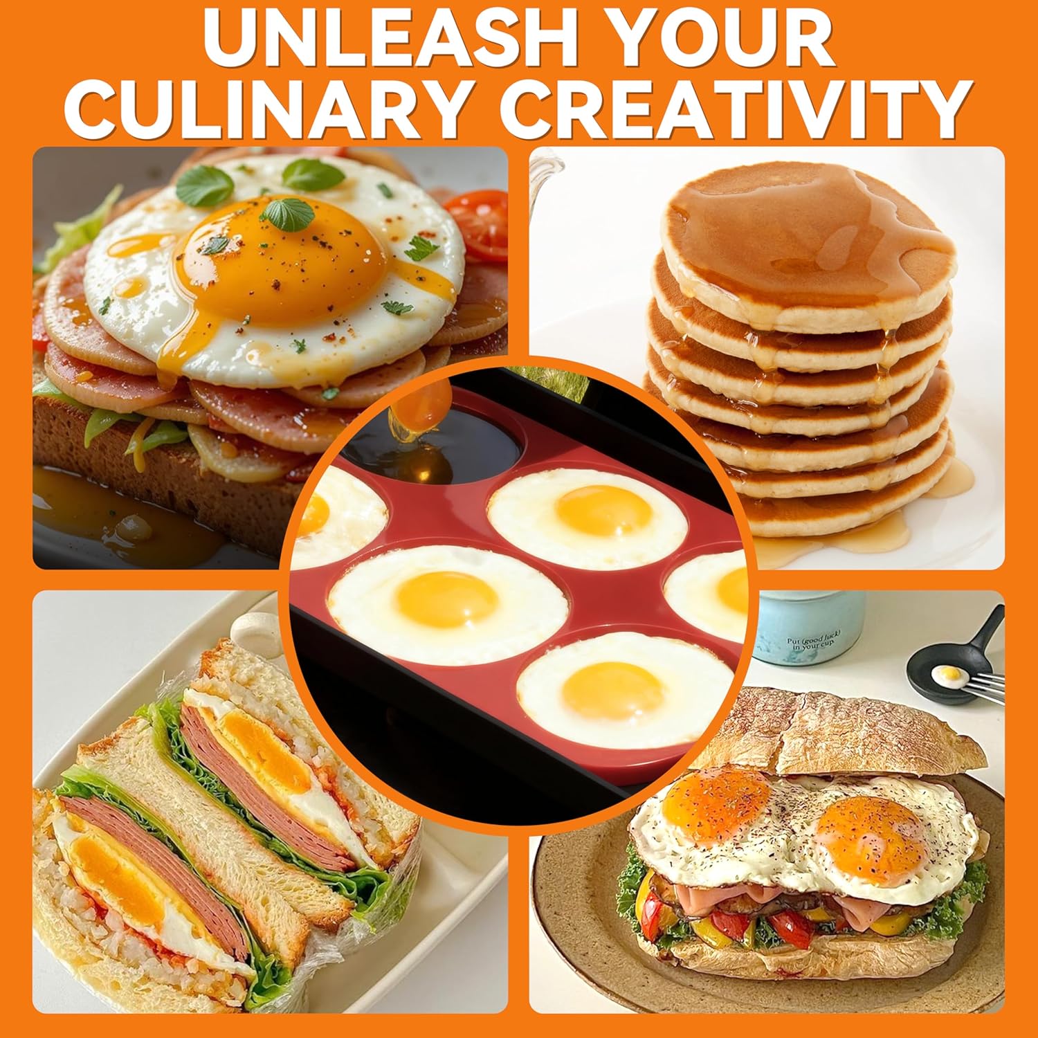 Baker's Friend 6 Round Silicone Egg Rings for Frying Eggs & Pancake, Non-Stick & Heat-Resistant, Ergonomic Handles, Omelette Ring for Griddle, 4 Inch, Red