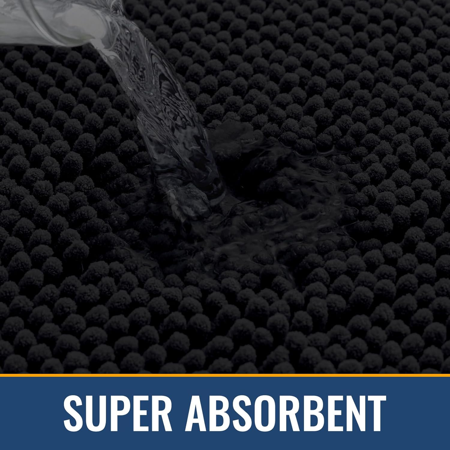 Arotive Bathroom Rugs 40x32, Extra Soft Absorbent Shaggy Chenille Bath Rugs, Machine Washable Rubber Backing Non-Slip Bath Mats for Bathroom Floor Tub and Shower, Home Decor Accessories, Black