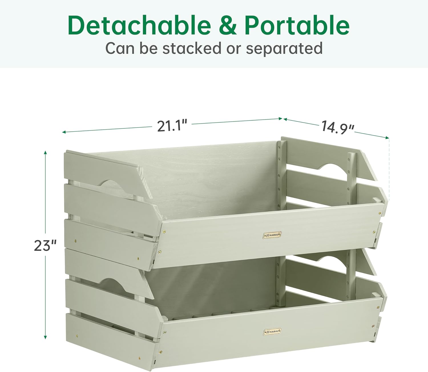 HABAU Wood Potato Onion Storage Bins - Wooden Stackable Produce Basket - Fruit Vegetable Storage for Kitchen Pantry Organization, Set 2 Pieces